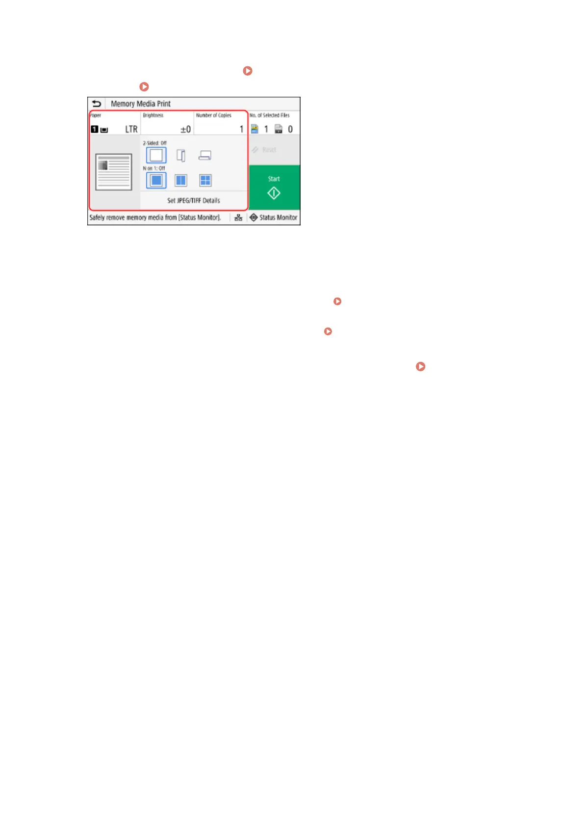 Congure the print settings. Memory Media Print Settings (Touch Panel Model)