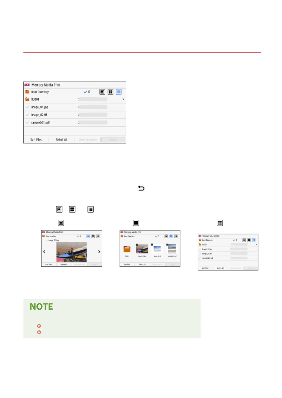 Press [ ], [ ], or [ ] at the top right of the screen to change the way les are displayed.