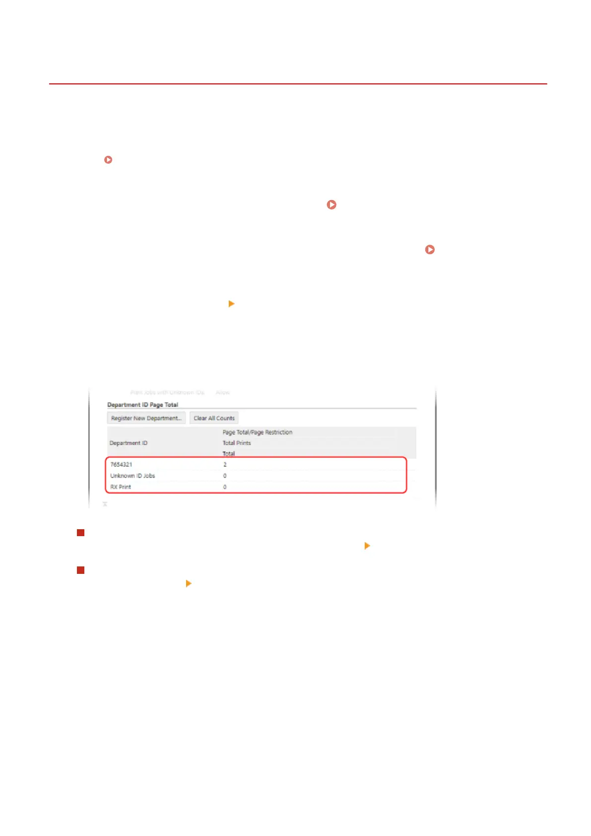 You can view the number of pages printed for each Department ID when Department ID Management is enabled.