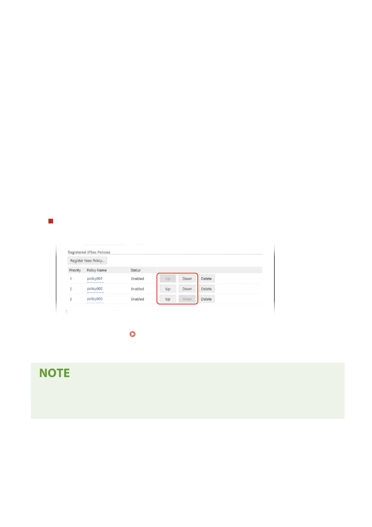Click [Up] or [Down] to the right of the policy name to set the priority. Higher level policies have priority in