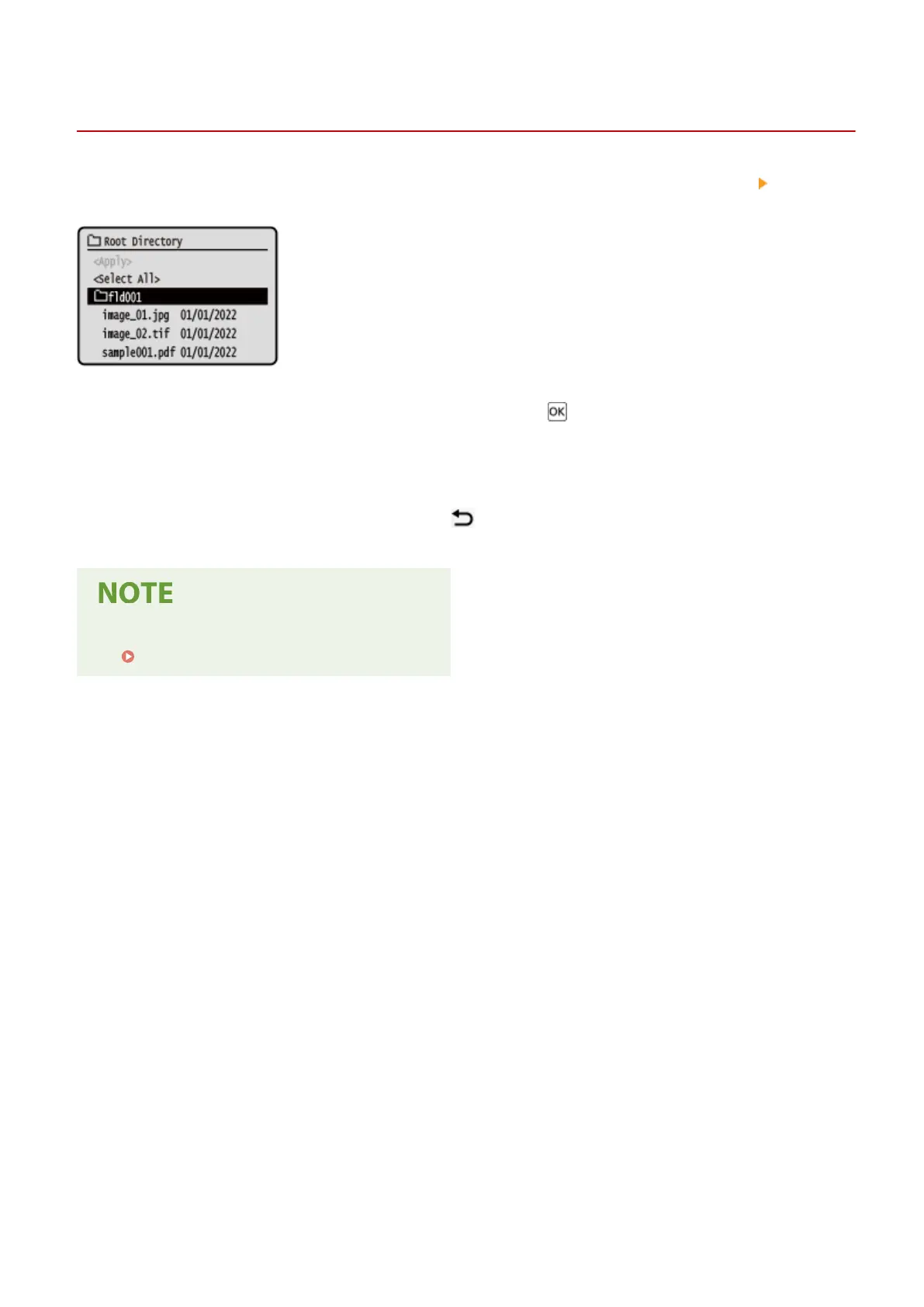 To select all displayed les, select [<Select All>] on the screen and press . If there are both PDF les and image les