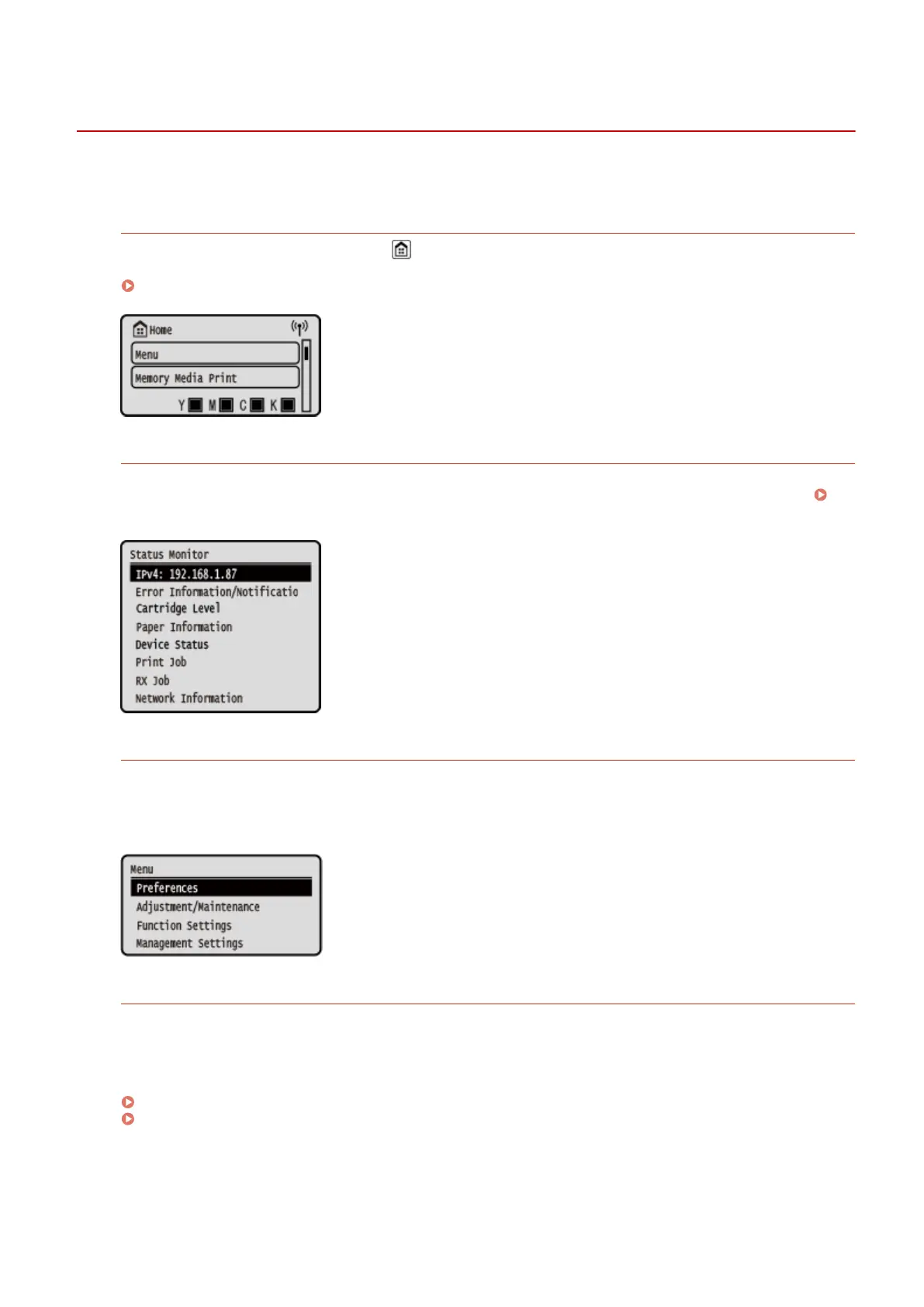 This screen is displayed when you press [Status Monitor] on the [Home] screen and other locations. Use this