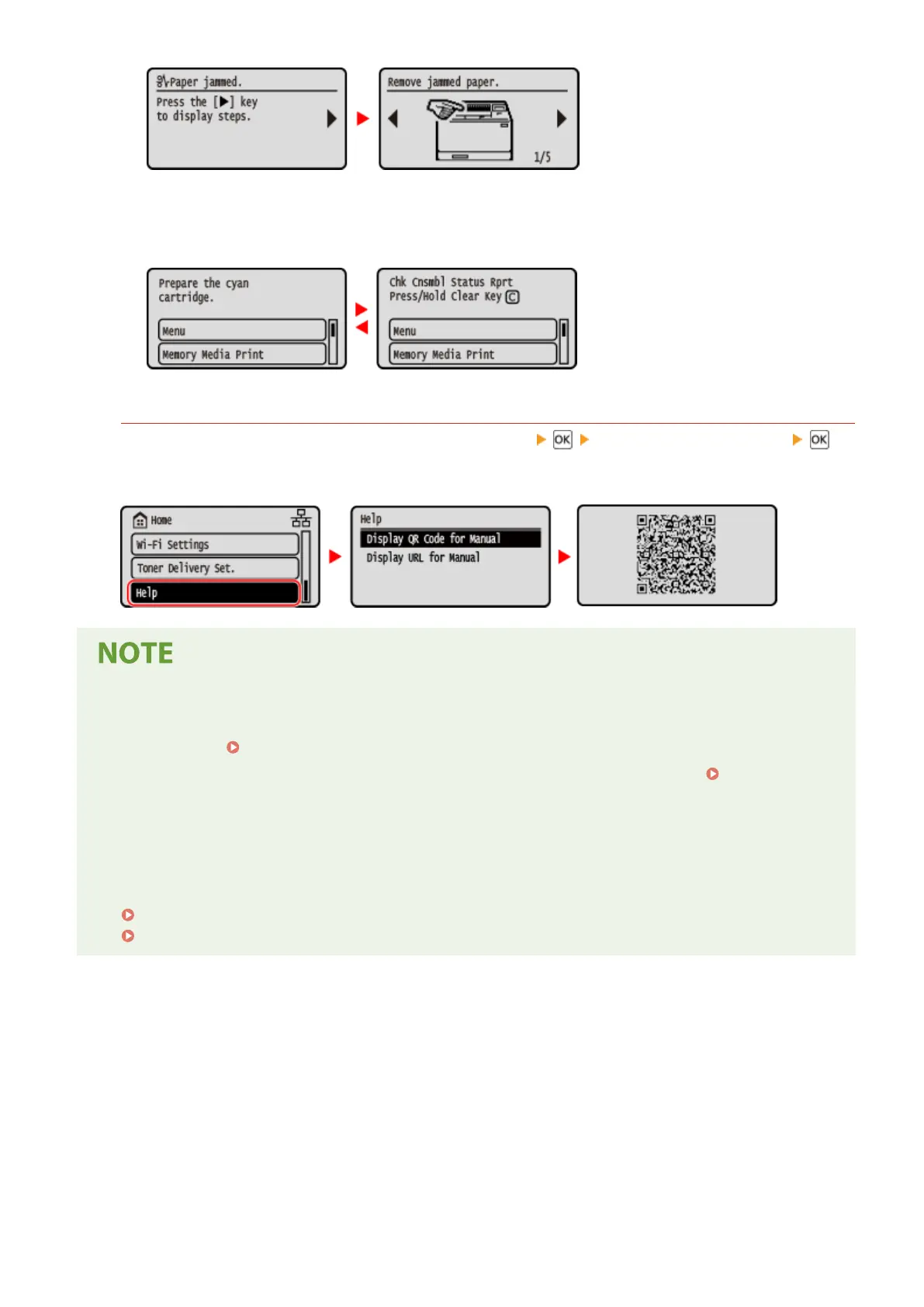 A QR code is displayed by pressing [Help] in the [Home] screen [Display QR Code for Manual]