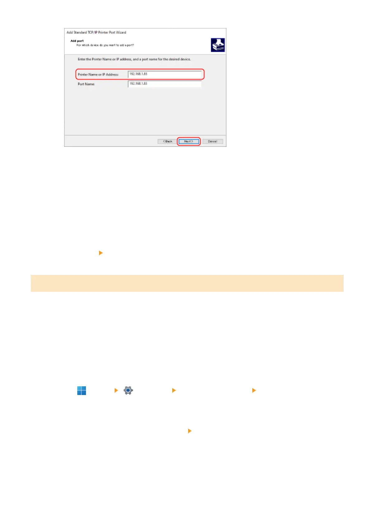➠ The [Congure Port] screen or [Congure Standard TCP/IP Port Monitor] screen is displayed.