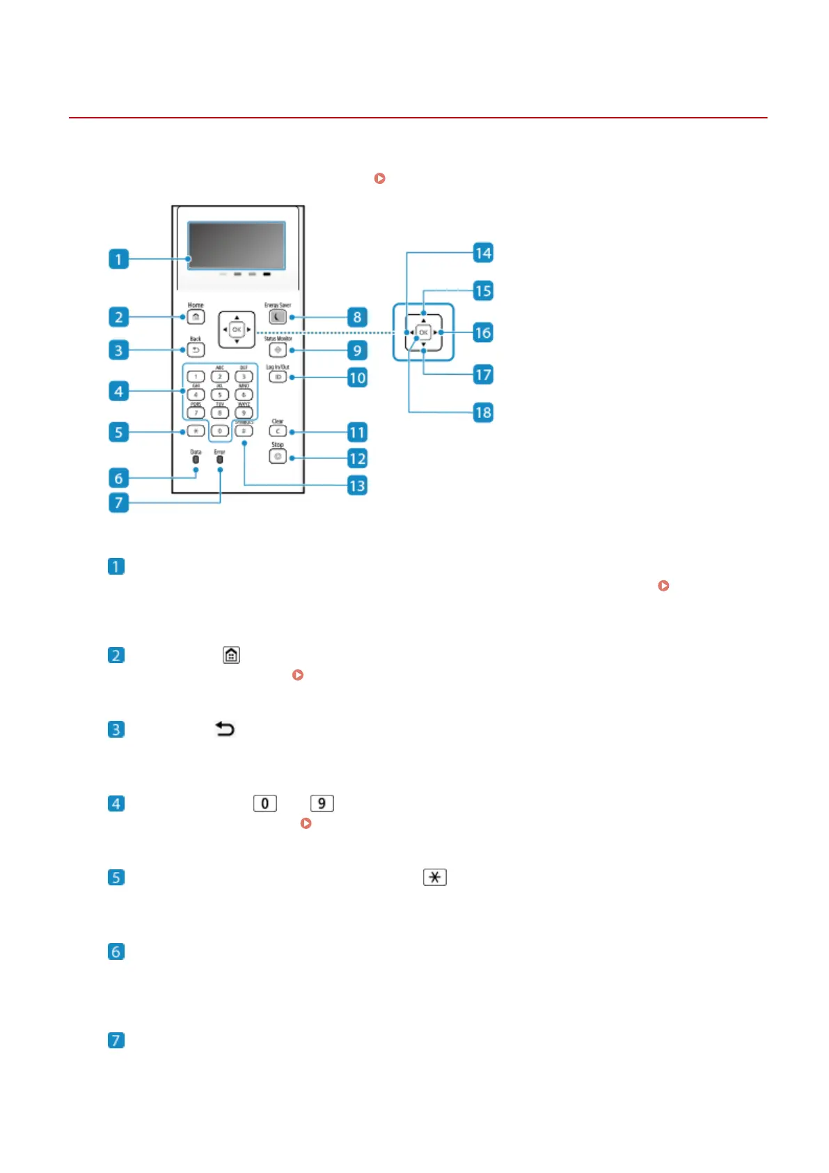 Displays the [Home] screen. [Home] Screen(P. 91)