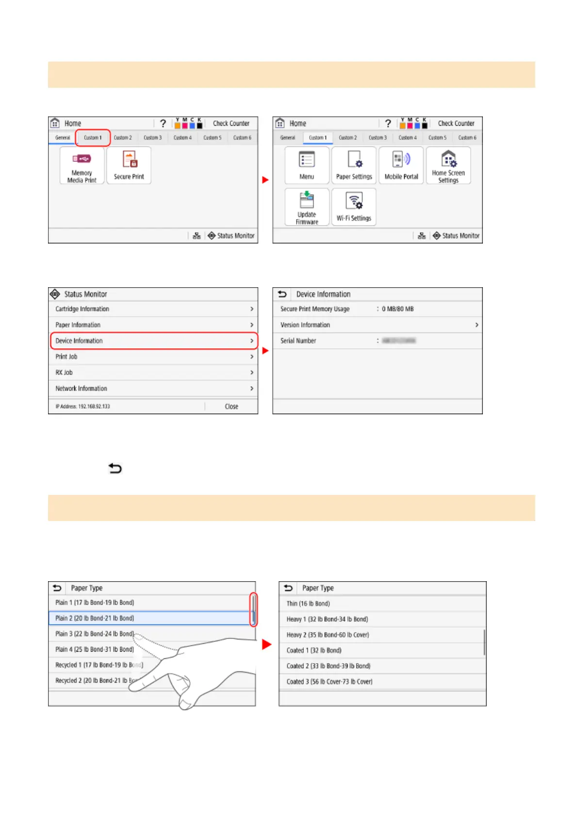 When you tap an item name or button, the item can be selected. The selected screen is displayed, or the selected