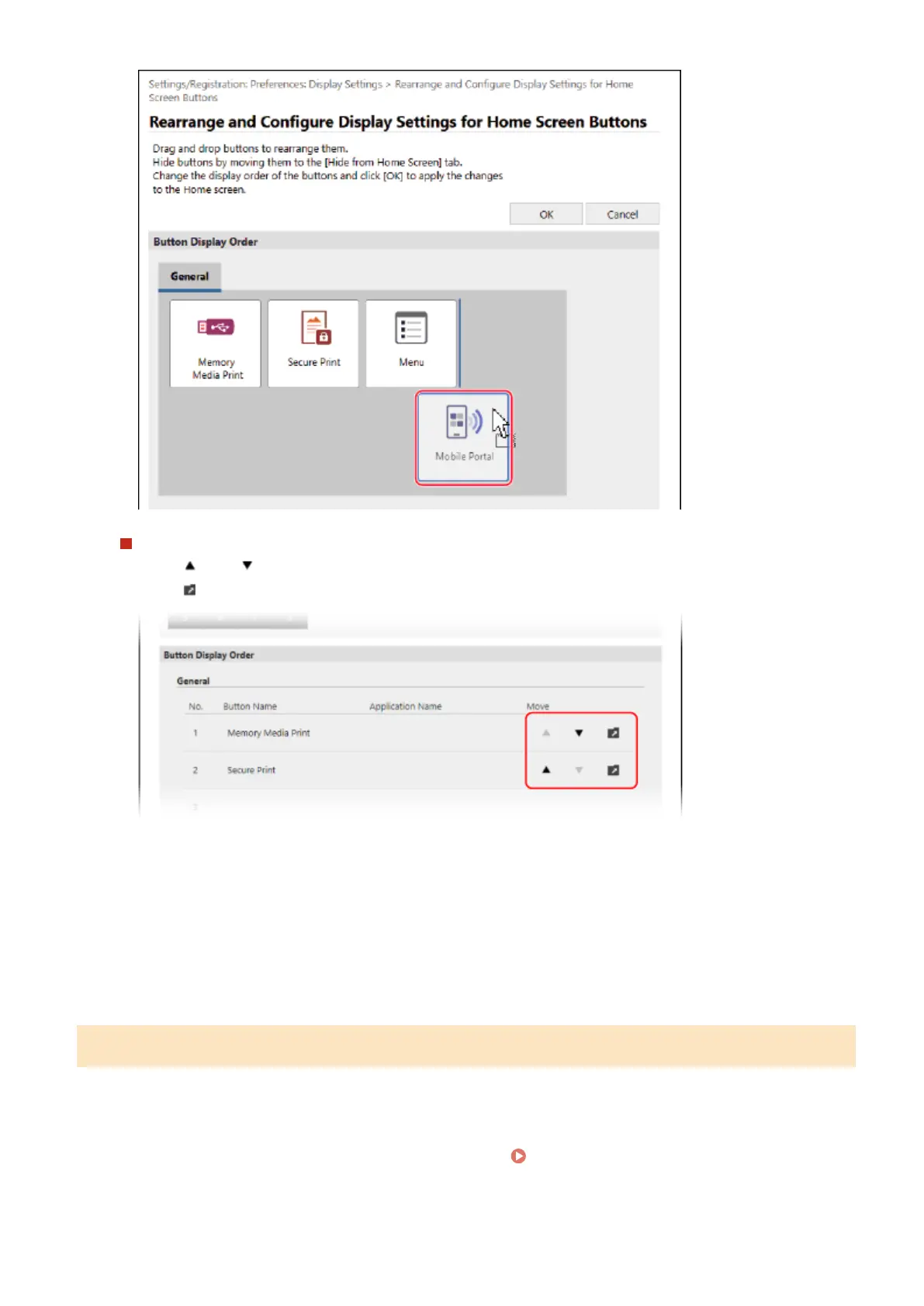Click [ ] or [ ] next to the name of the button you want to rearrange to move the button up or down.
