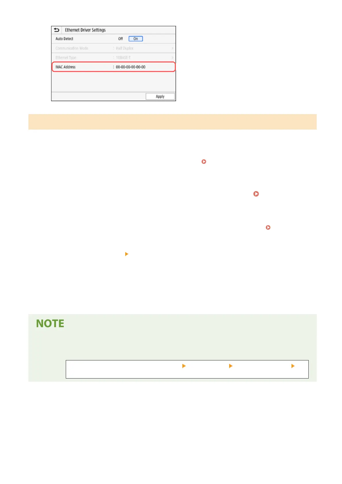 View the MAC address and the settings.