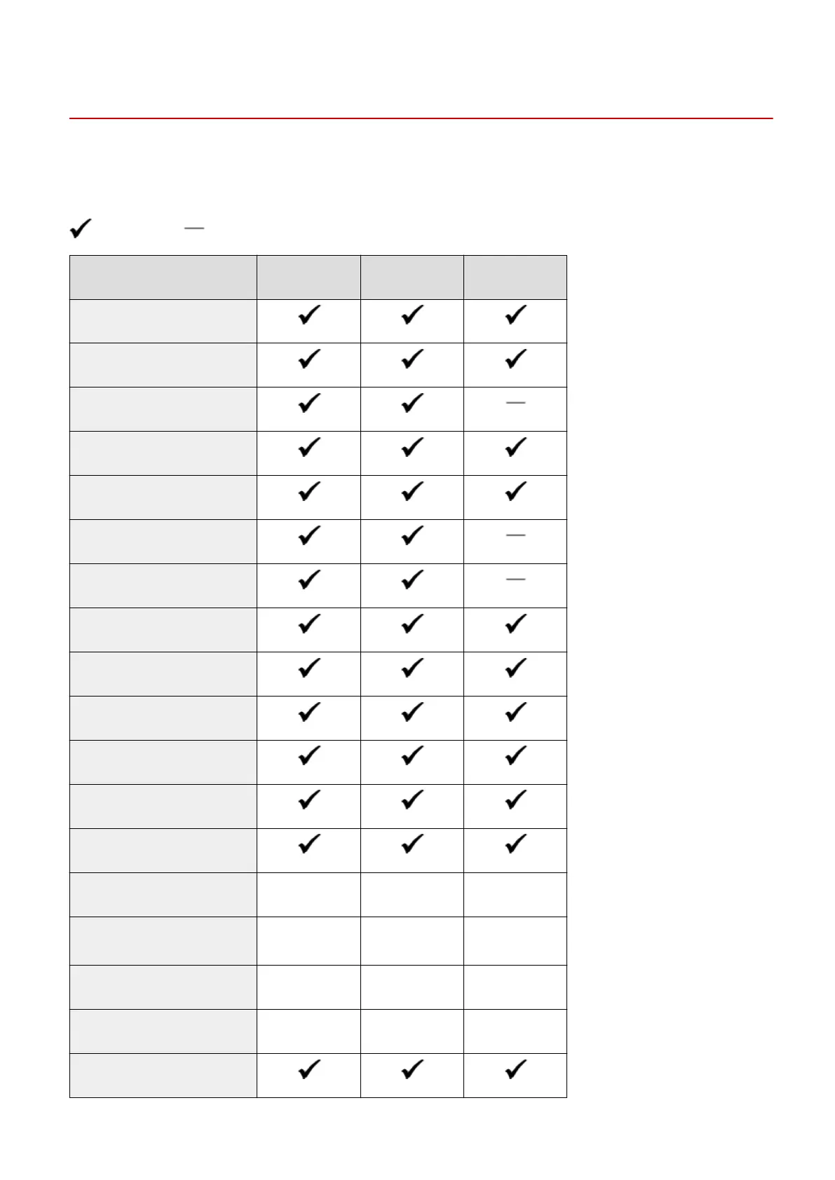 listed in User's Guide may not be available depending on your model. Use the table below to see which functions are