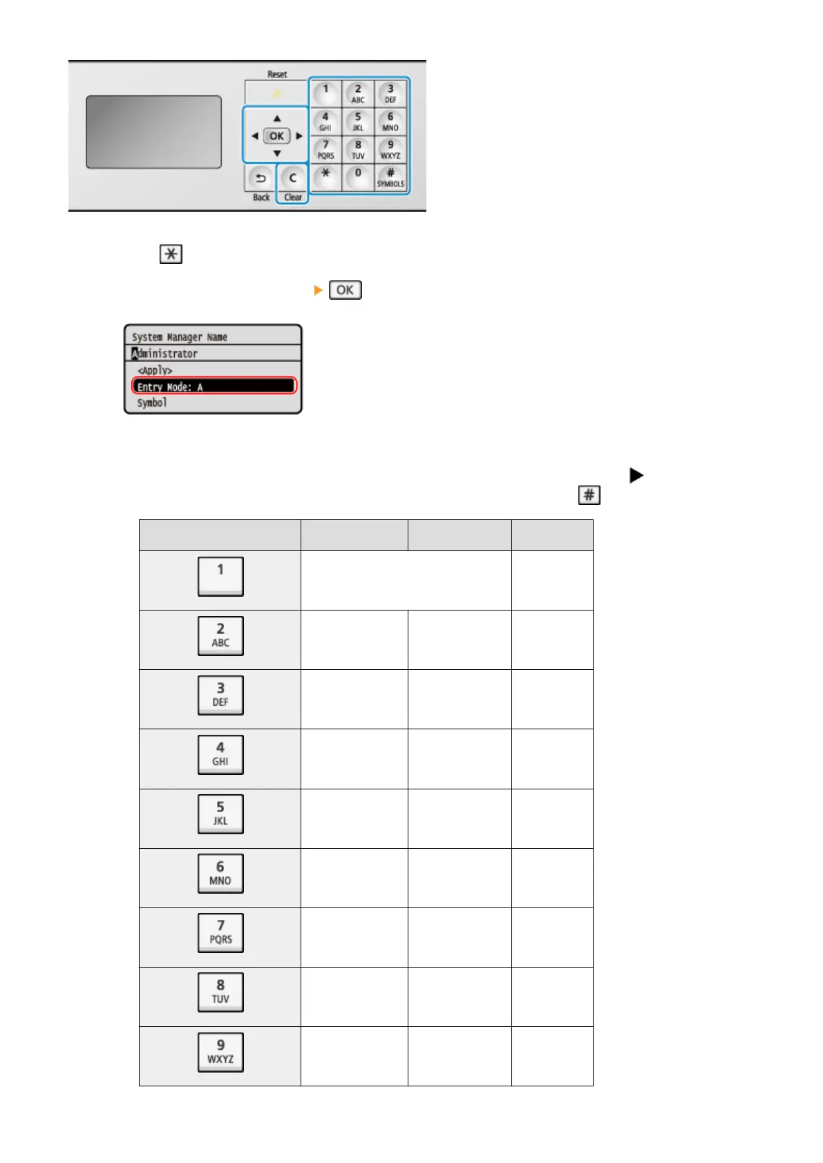 When the entry mode is set to [a] or [A], a symbol can be entered b
