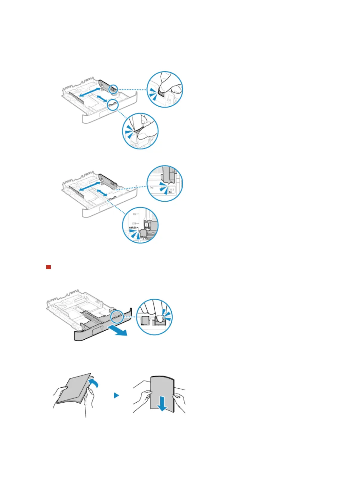 Align the projections on the paper guides with the size markings of the paper to be loaded.