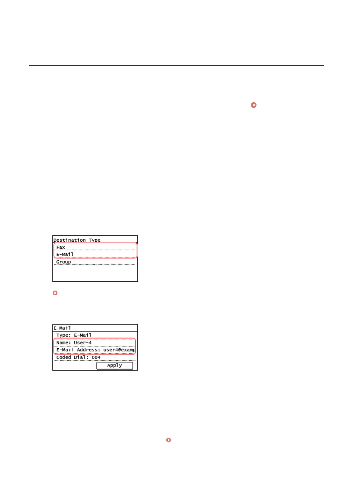 ● For destination information, press [E-Mail Address] or [Fax Number], enter that information, and then press