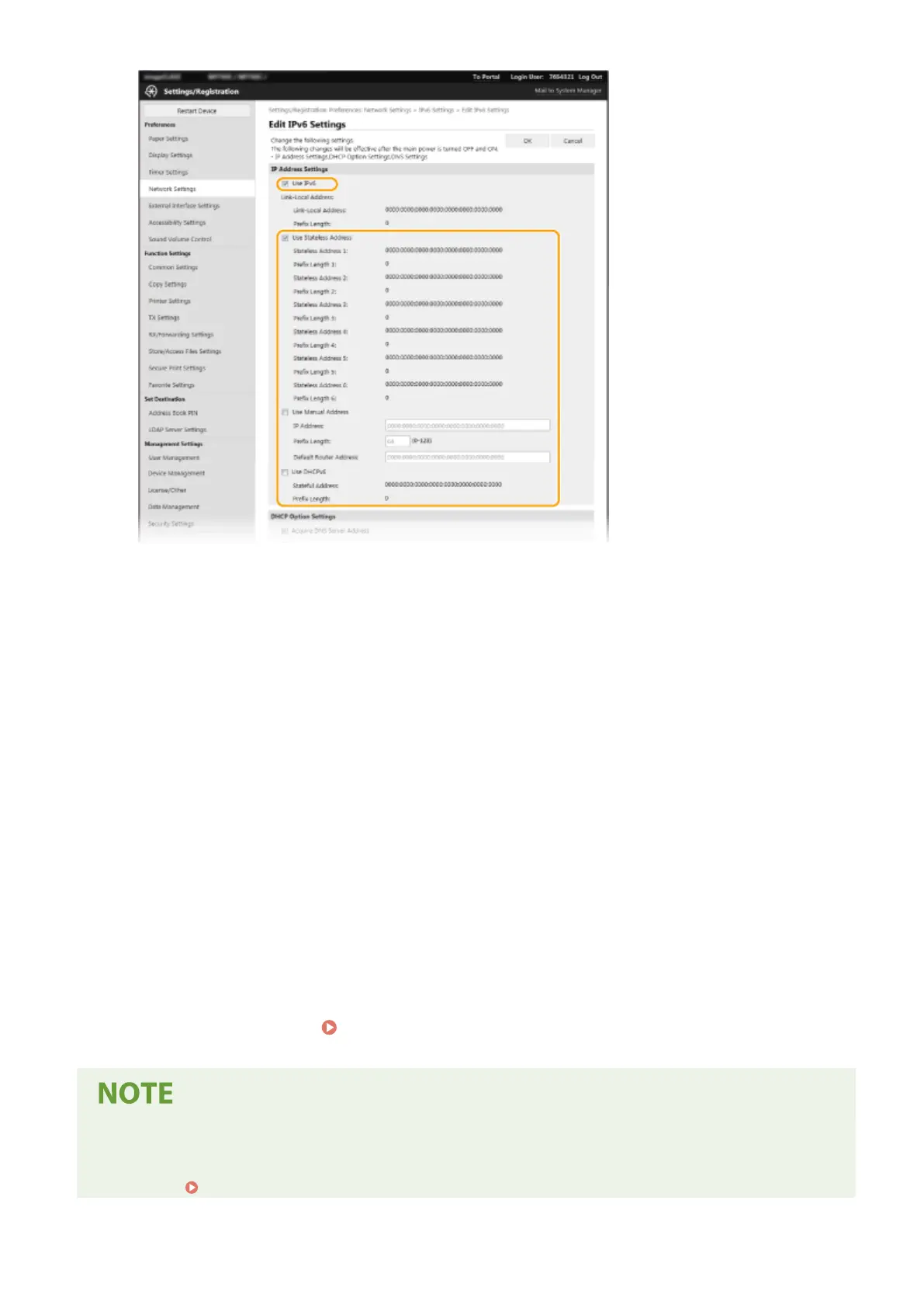 Select the check box when using a stateless address. When not using a stateless address, clear the check box.