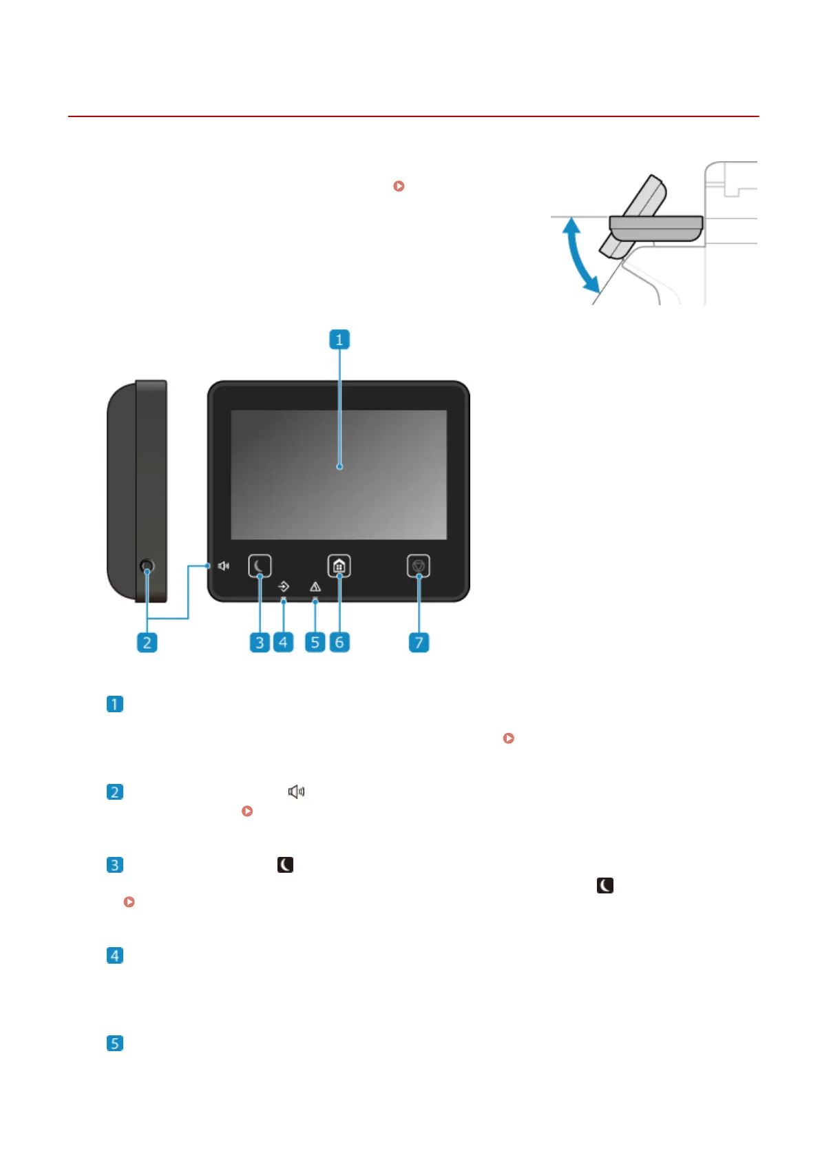 Displays the screens for operating the functions, usage, messages, and other information. This touch panel
