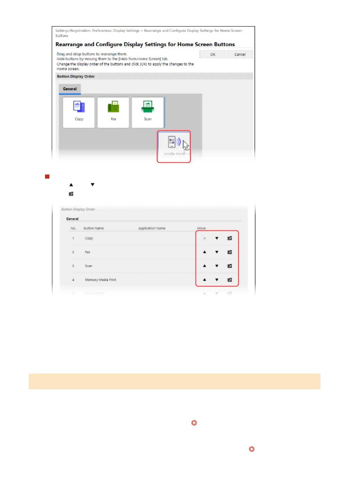 Click [ ] or [ ] next to the name of the button you want to rearrange to move the button up or down.