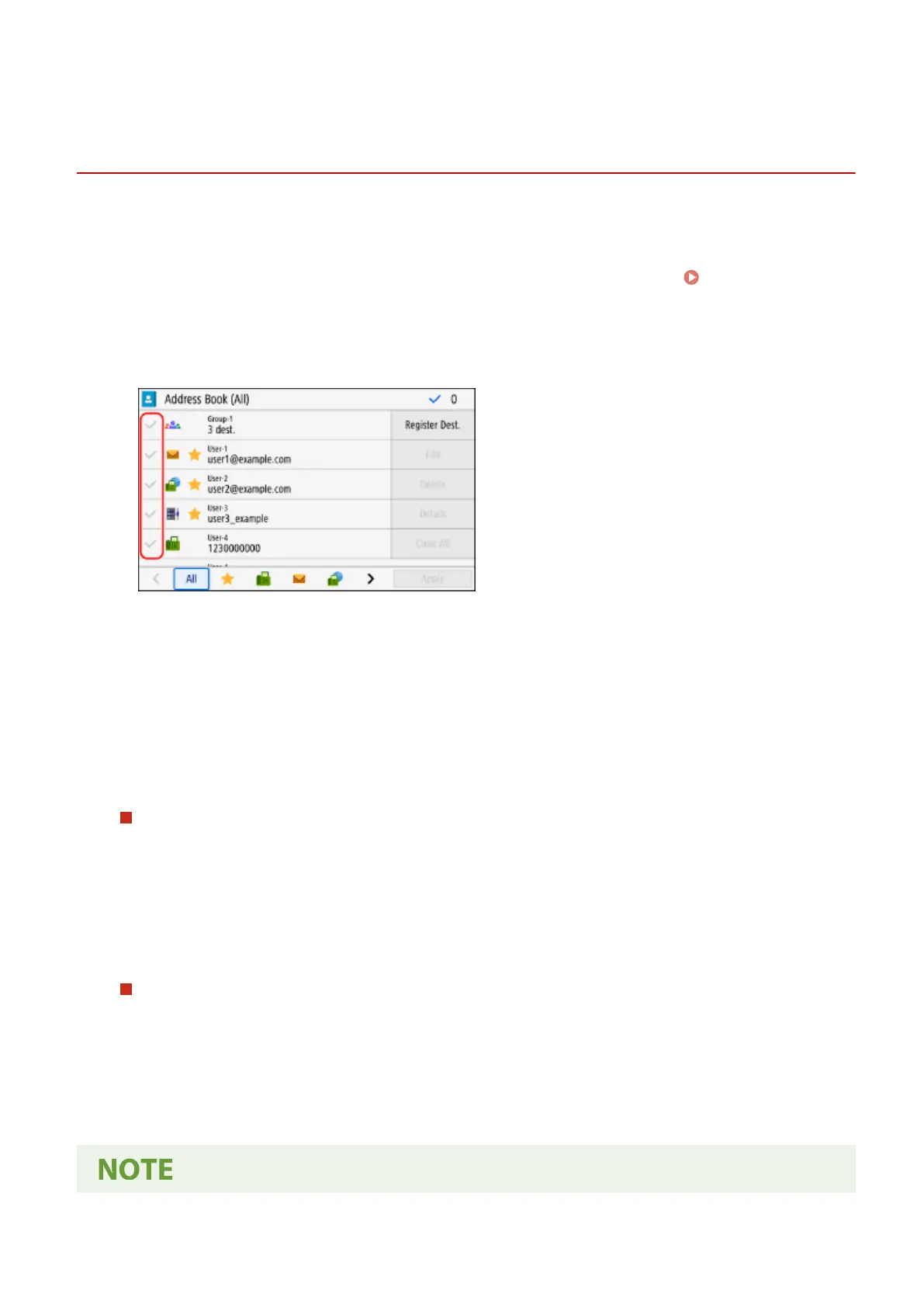 You can edit information of destinations registered in the Address Book or delete unused destinations.