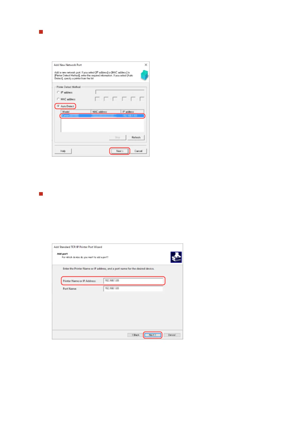➠ The [Add Standard TCP/IP Printer Port Wizard] screen is displayed.