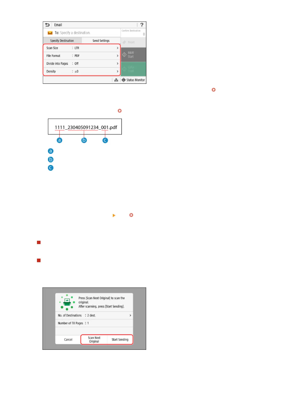 ● Scanned data is sent with the following le name. You can also use the [Send Settings] tab to specify a