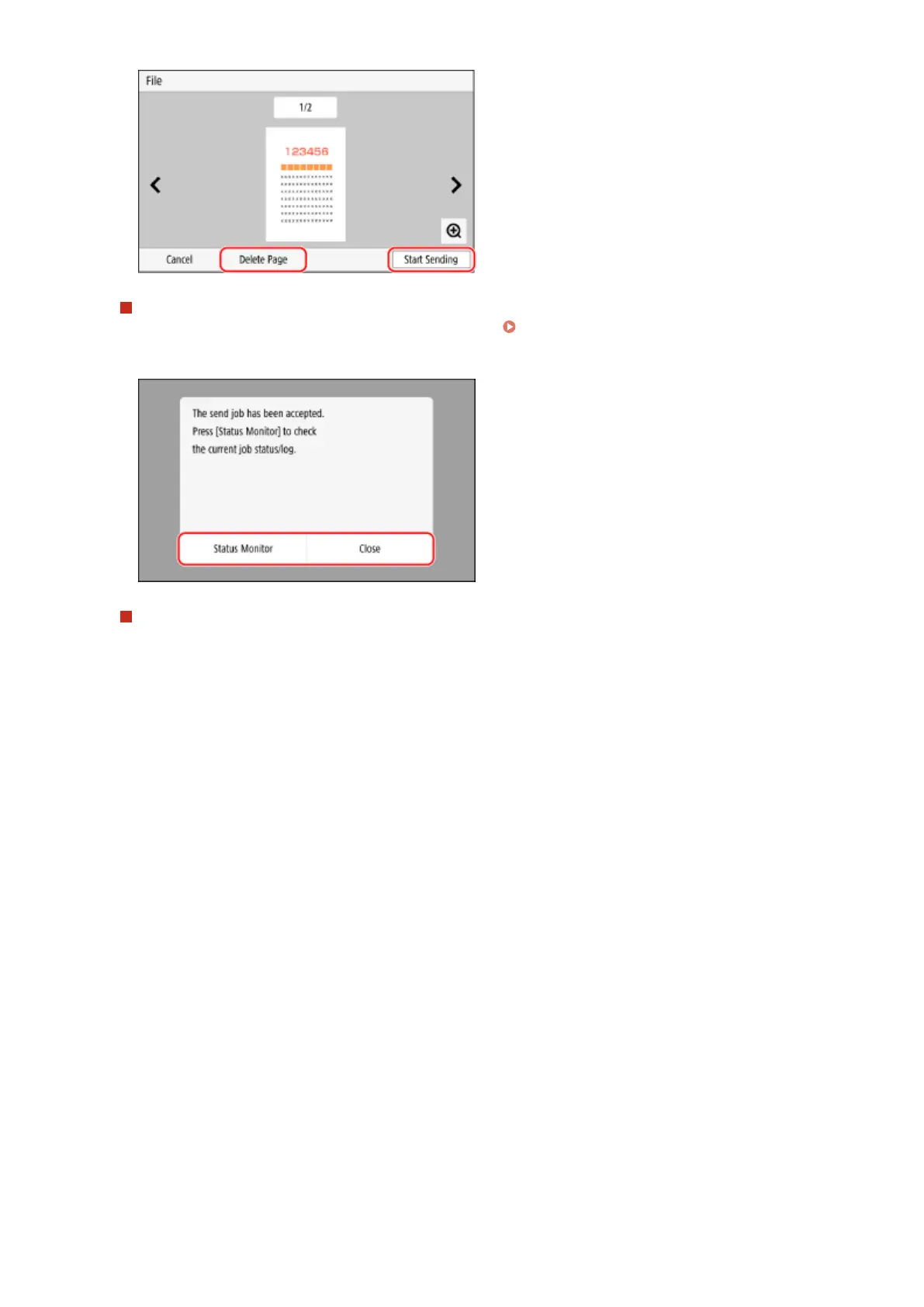To view the save status and log, press [Status Monitor]. Checking the Send and Save Status and Log of