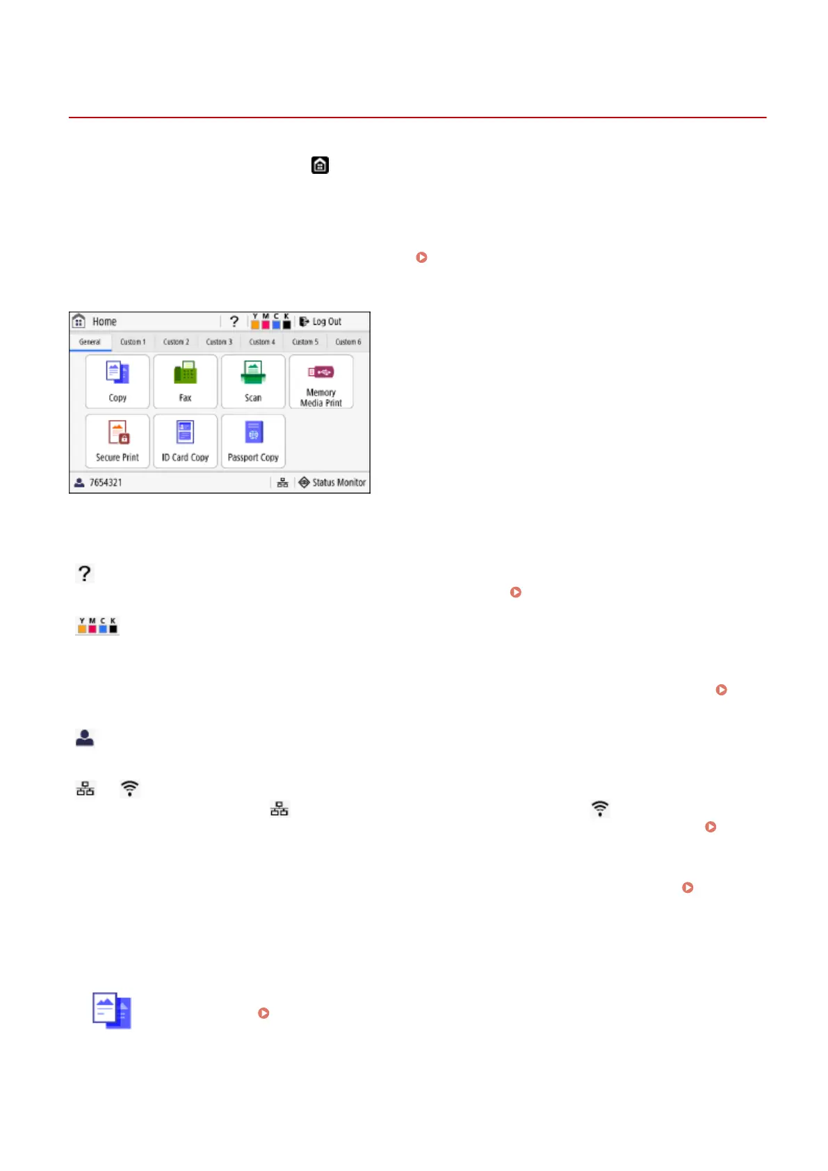 This is displayed when the user is logged in. Press this to log out after completing operations on the machine.
