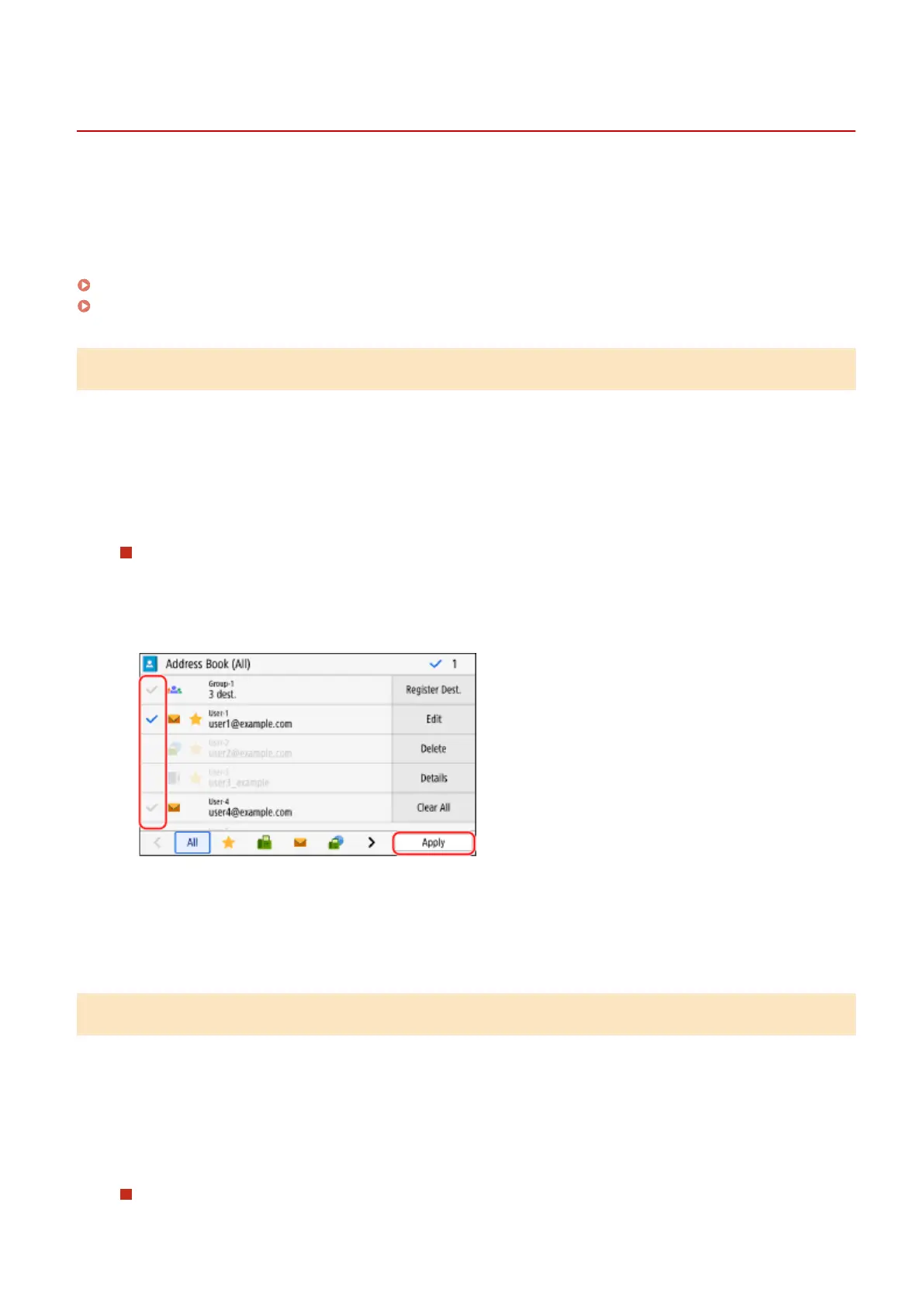 When destinations are specied by calling up the Address Book from the [Home] screen, the scan or fax