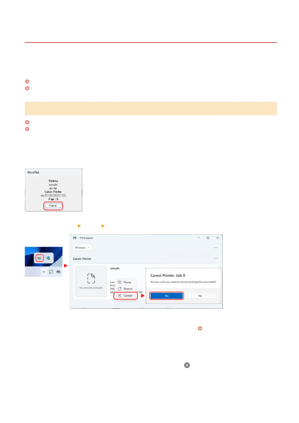 If the printer icon is not displayed in the Windows notication area or the document to be canceled is not displayed,