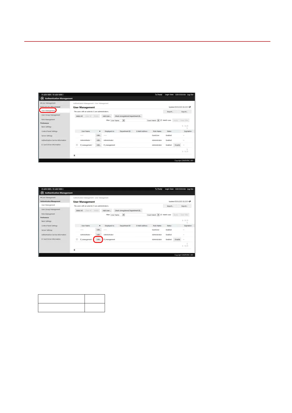 Click [Settings/Registration] → [User Management] → [Authentication Management] →