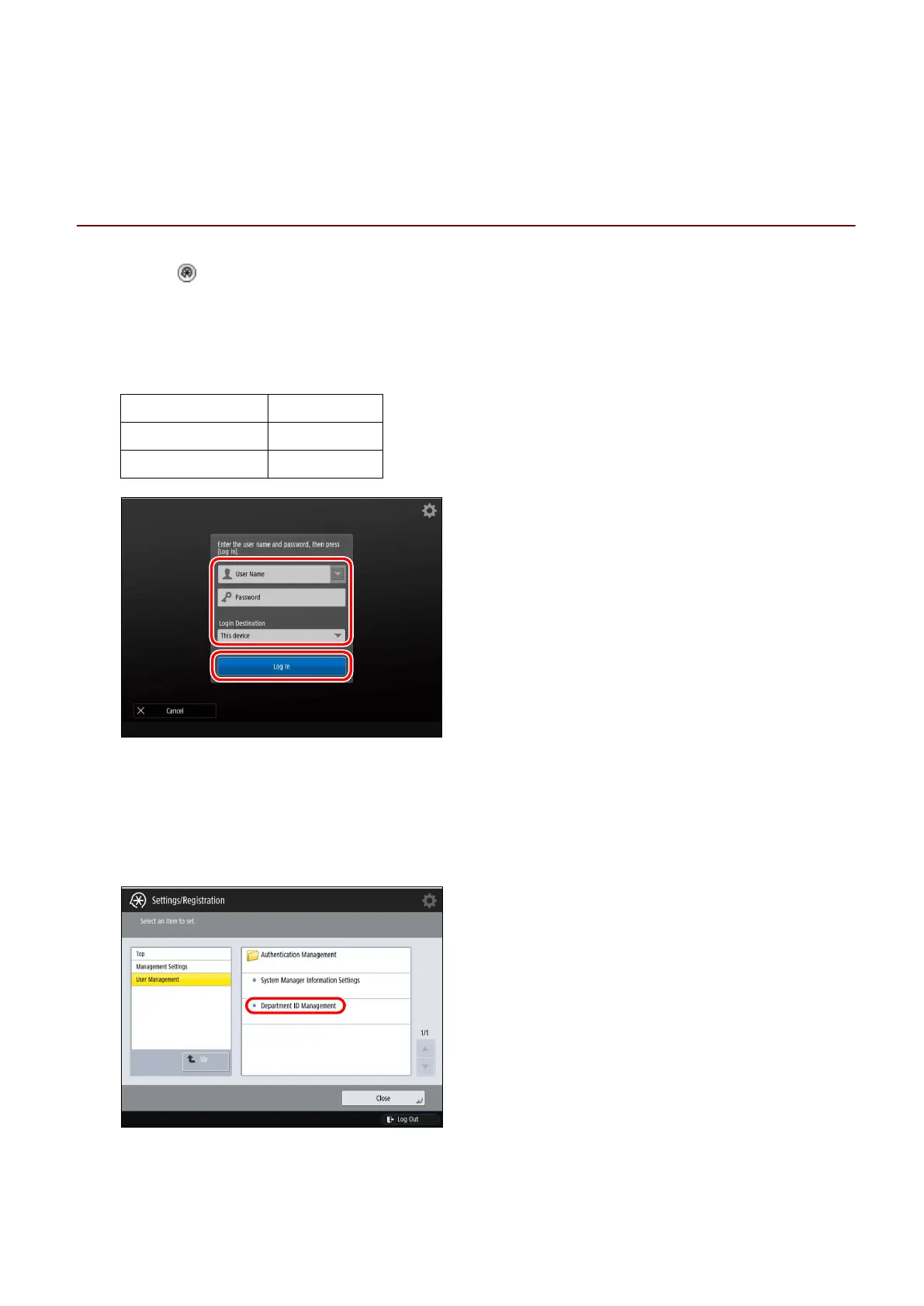 Press [Management Settings] → [User Management] → [Department ID Management].
