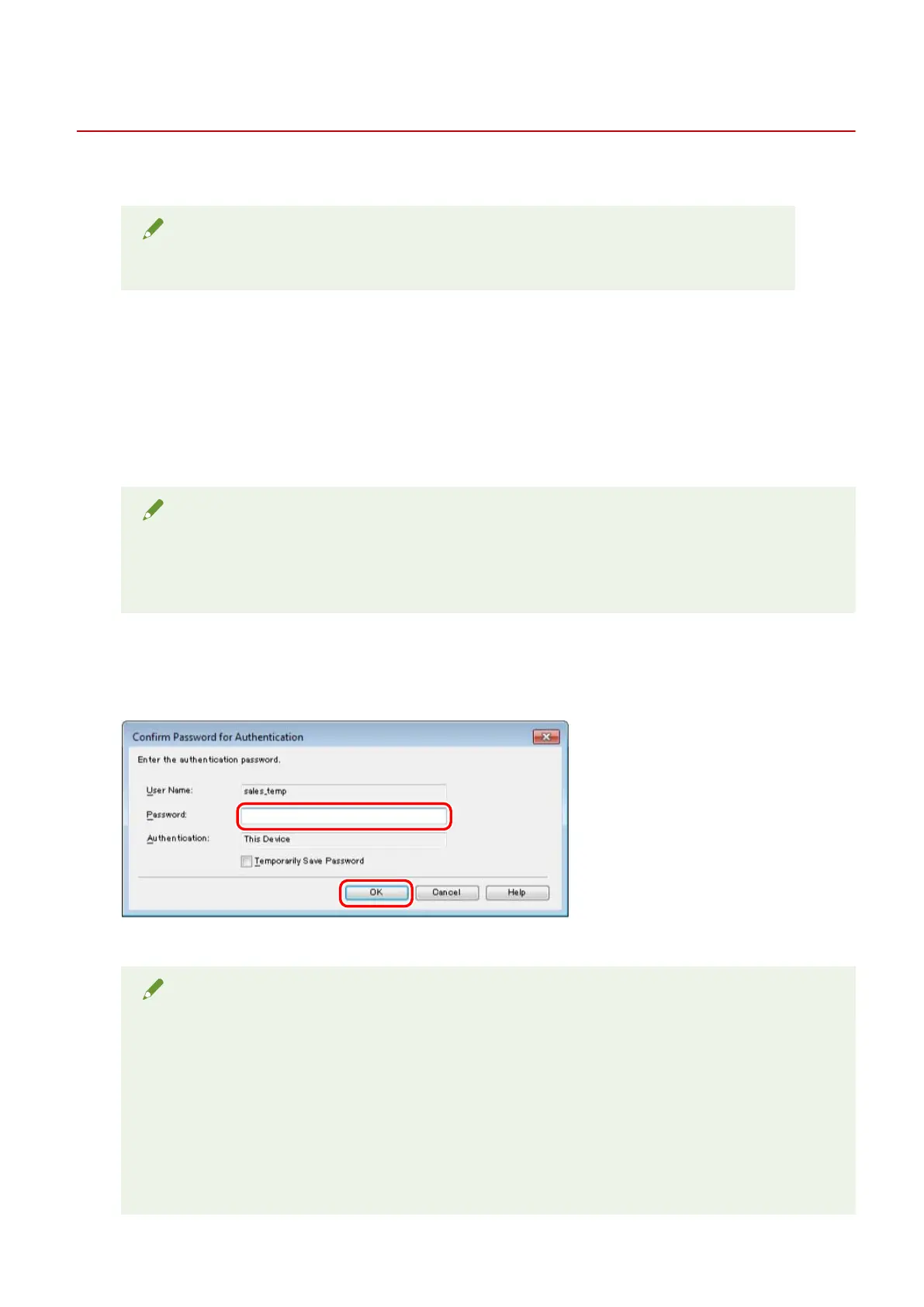 ● In this example, [Conrm Password for Authentication] dialog box is because [Save password and skip