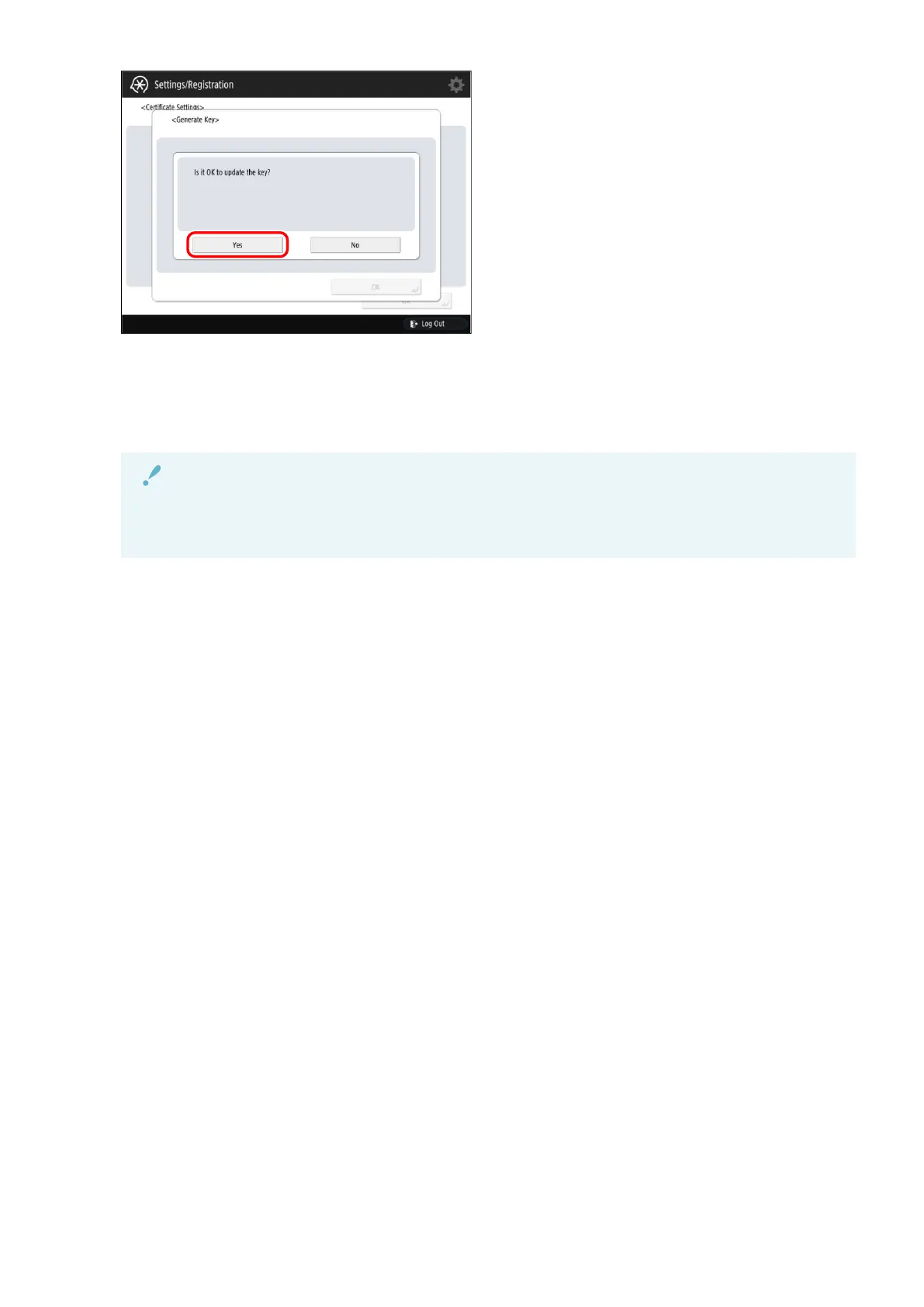 The key pair is updated after the device is restarted. For information on restarting the device, see the