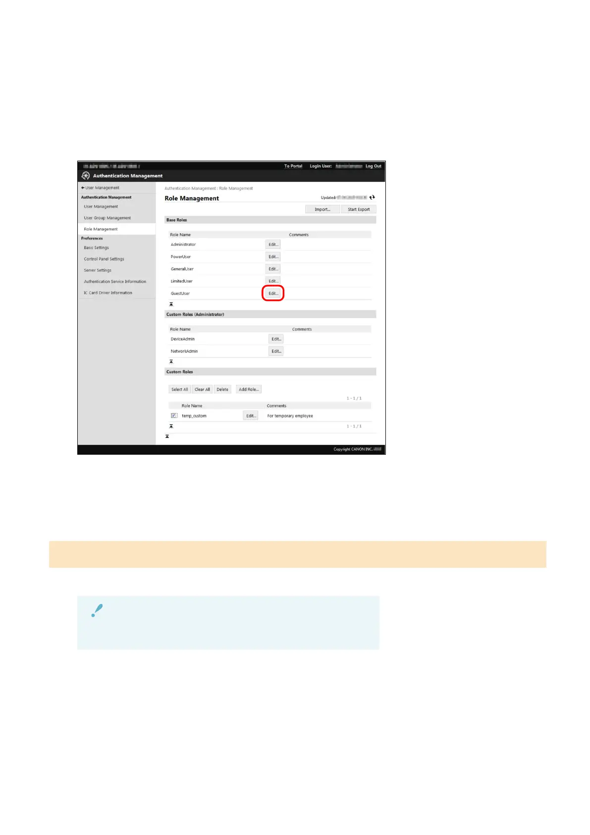 Click [Edit] for [GuestUser] in [Base Roles].