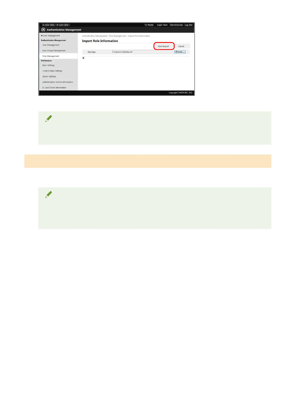 ● If the role information fails to be imported, the data is rolled back, and returns to the state it was