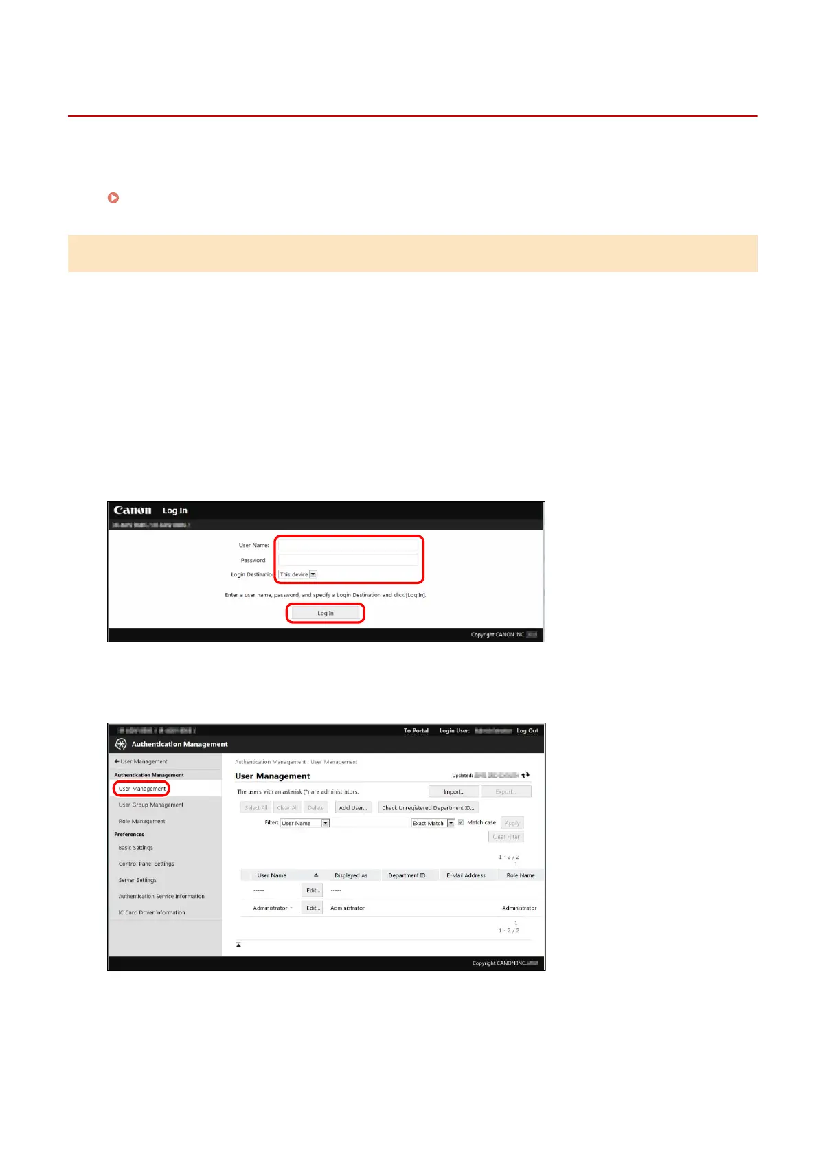Click [Settings/Registration] → [User Management] → [Authentication Management] →