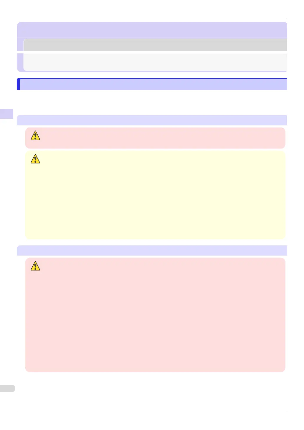 Follow the warnings and precautions below to use the printer safely. Do not perform any operations or procedures
