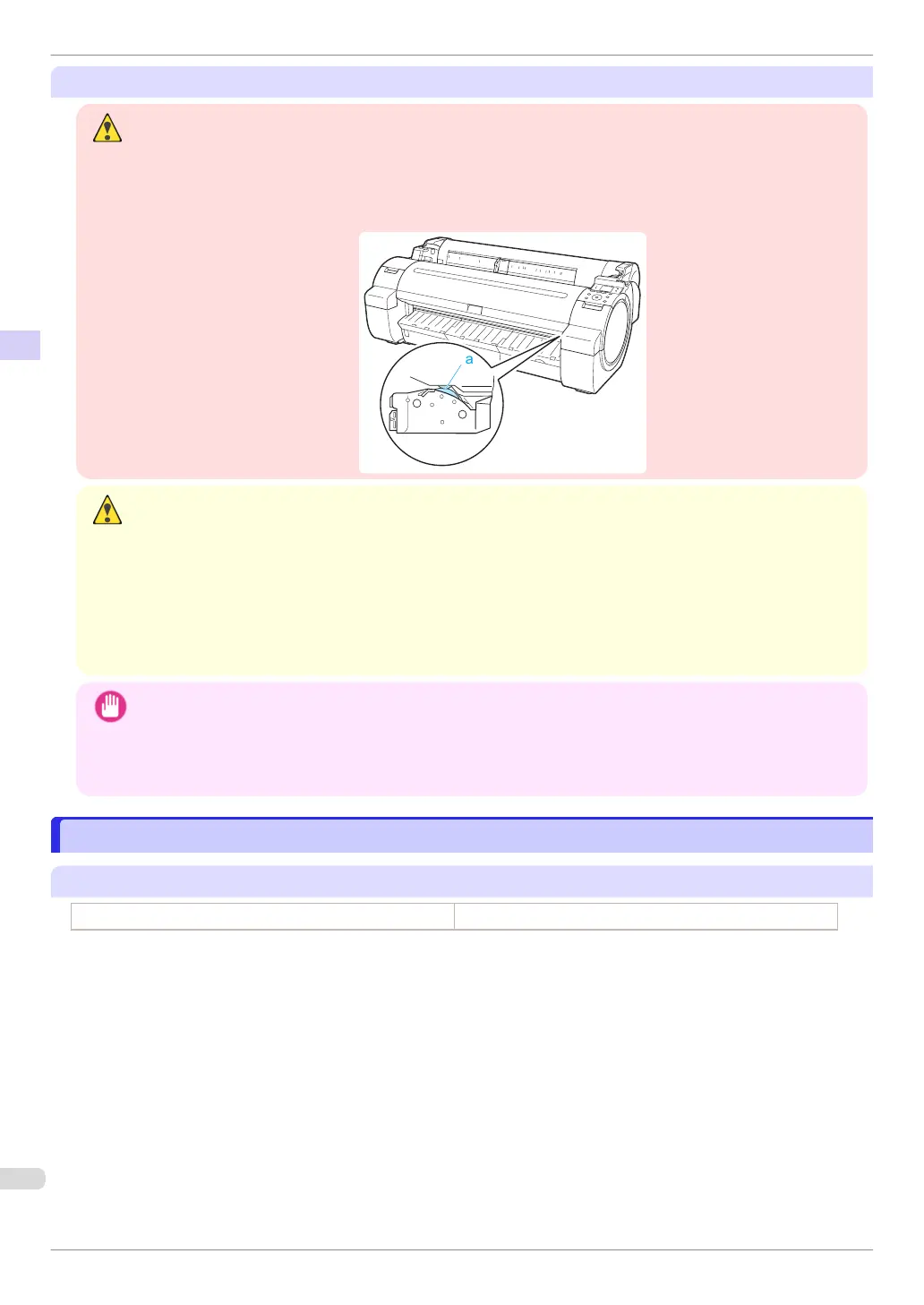 To prevent a fire hazard or dangerous electric shock, if a foreign object falls into or a liquid spills into the printer,