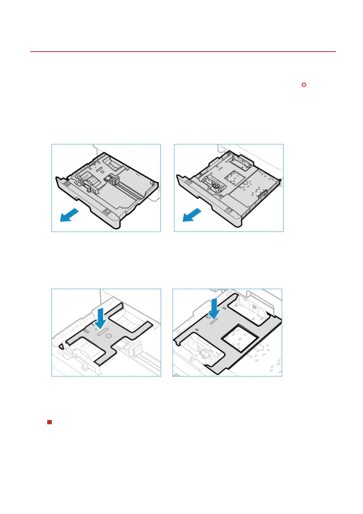 While squeezing the top part of the right guide, slide it to align with the size indicator for the paper to be