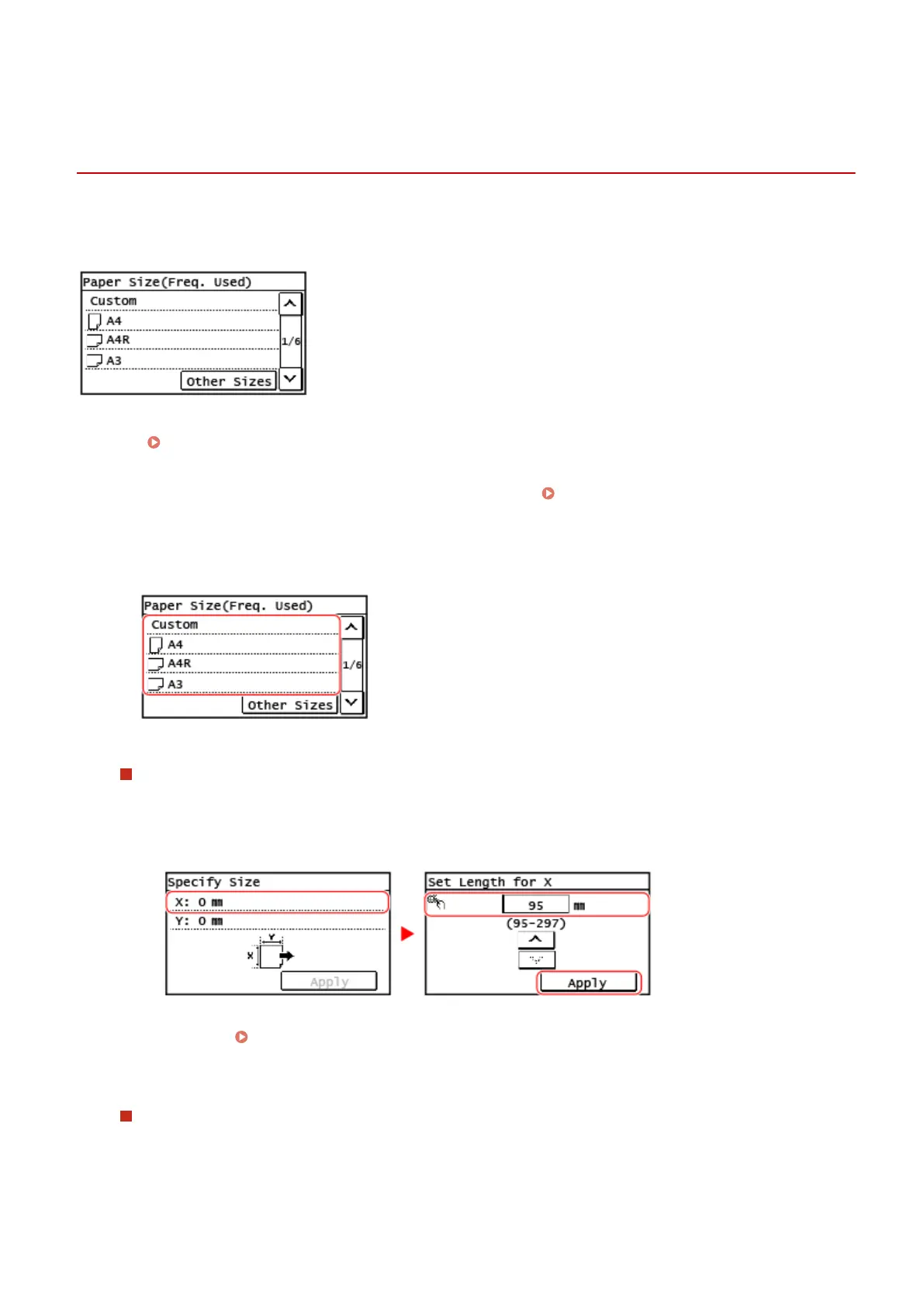 When frequently-used non-standard paper sizes are registered, the registered size is displayed as the