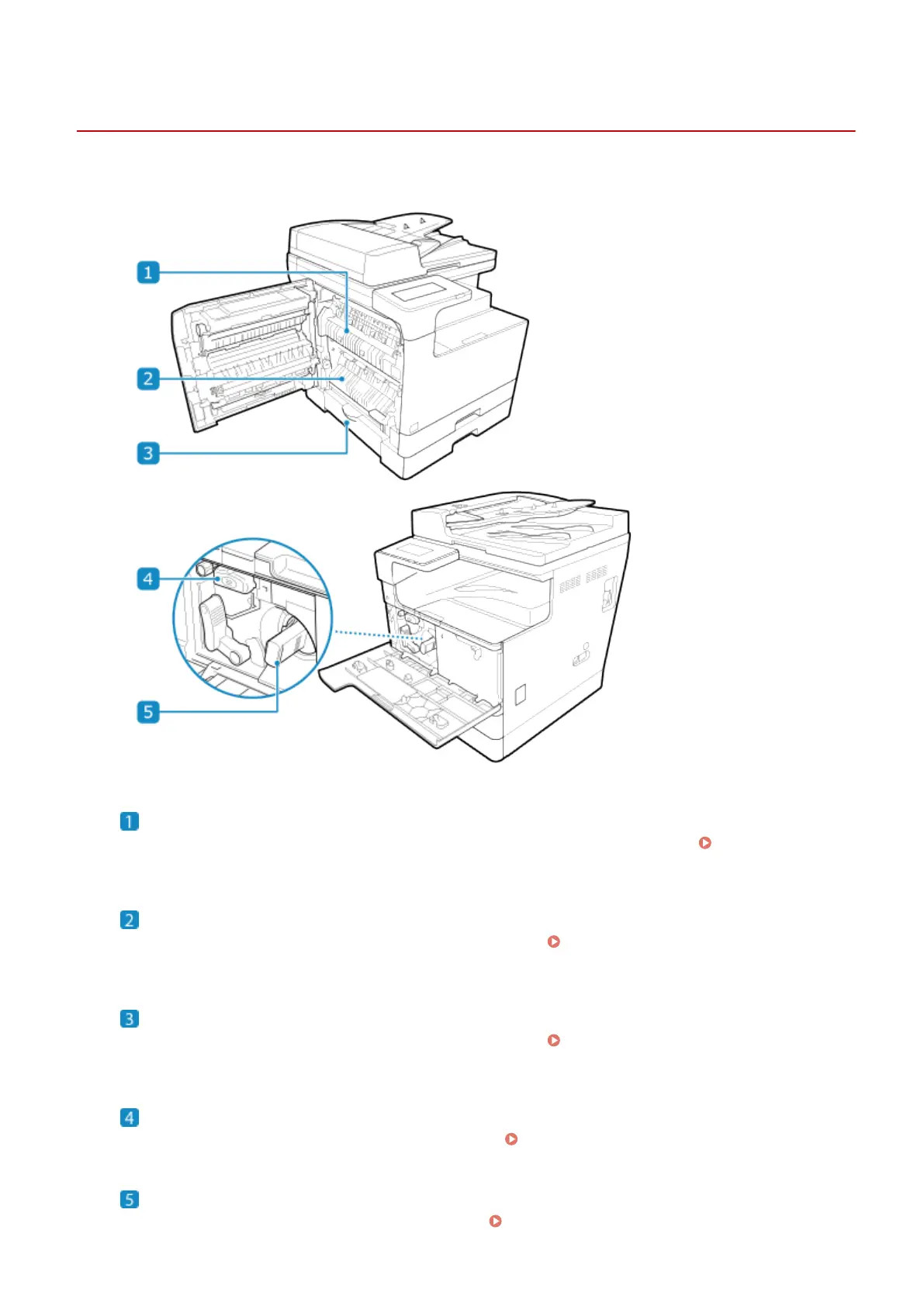 Open this cover when clearing a paper jam in paper drawer 2. Paper Jams inside the Machine and in a