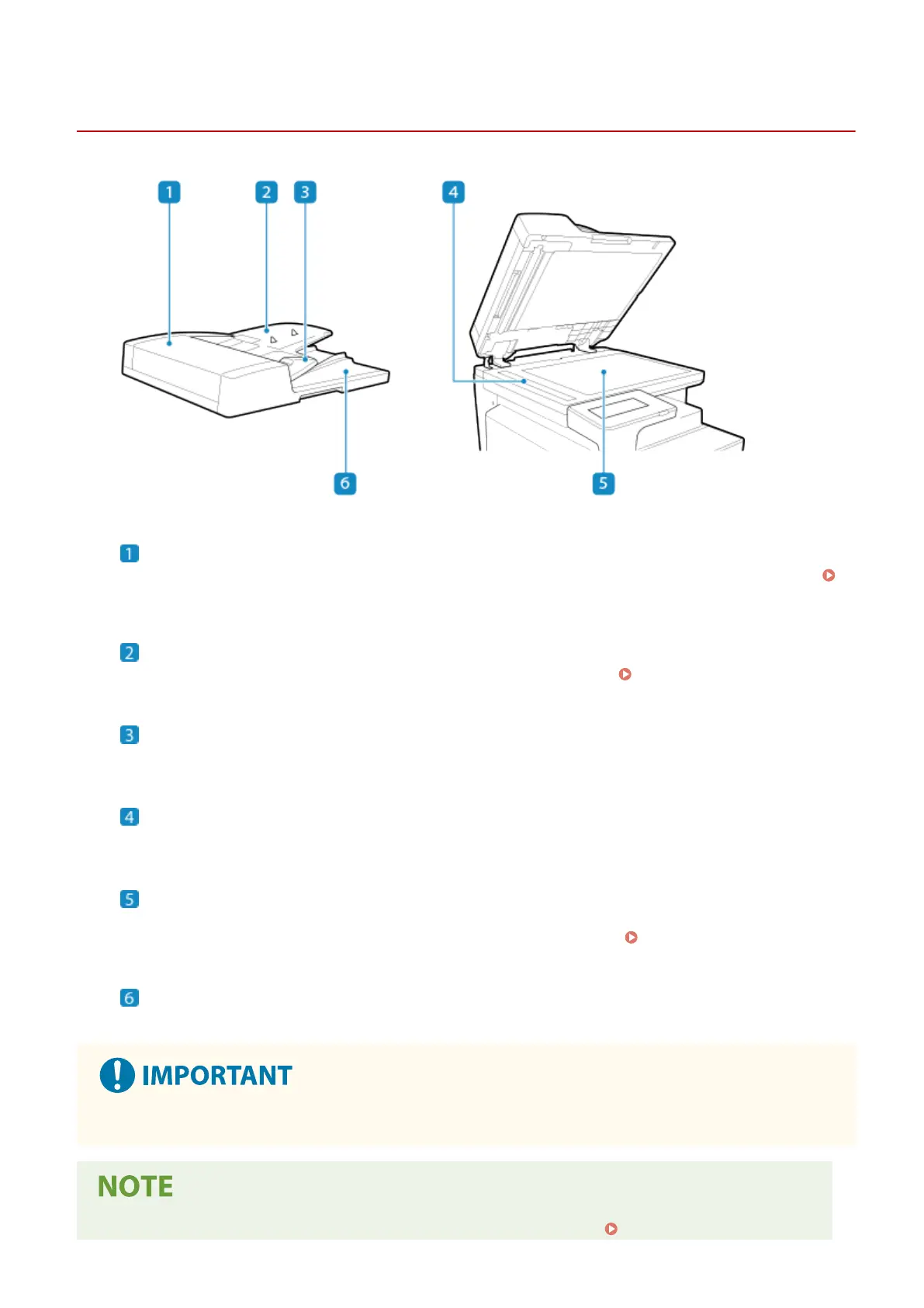 glass to copy or scan. The placed originals are scanned in a xed position. Placing Originals(P. 128)