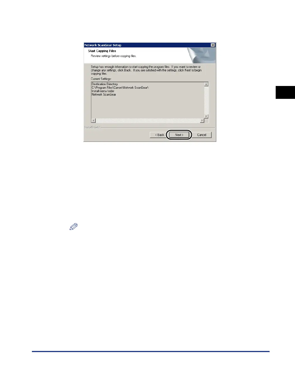 When installation is complete, before starting Network ScanGear you must use the ScanGear