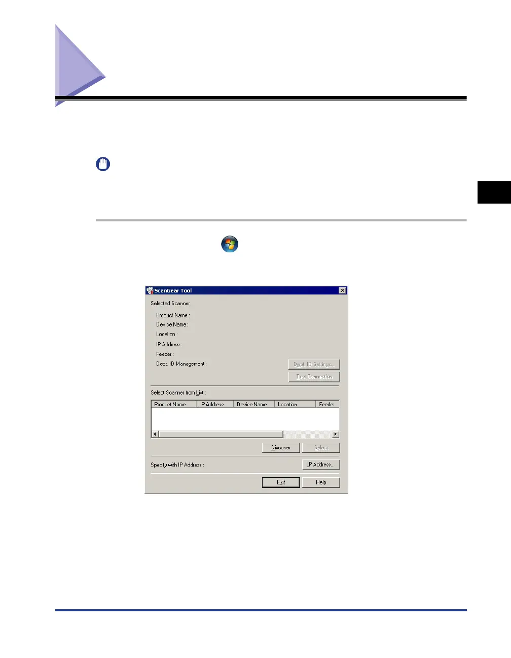 Selecting the network scanner to be used with the ScanGear Tool enables scanning with