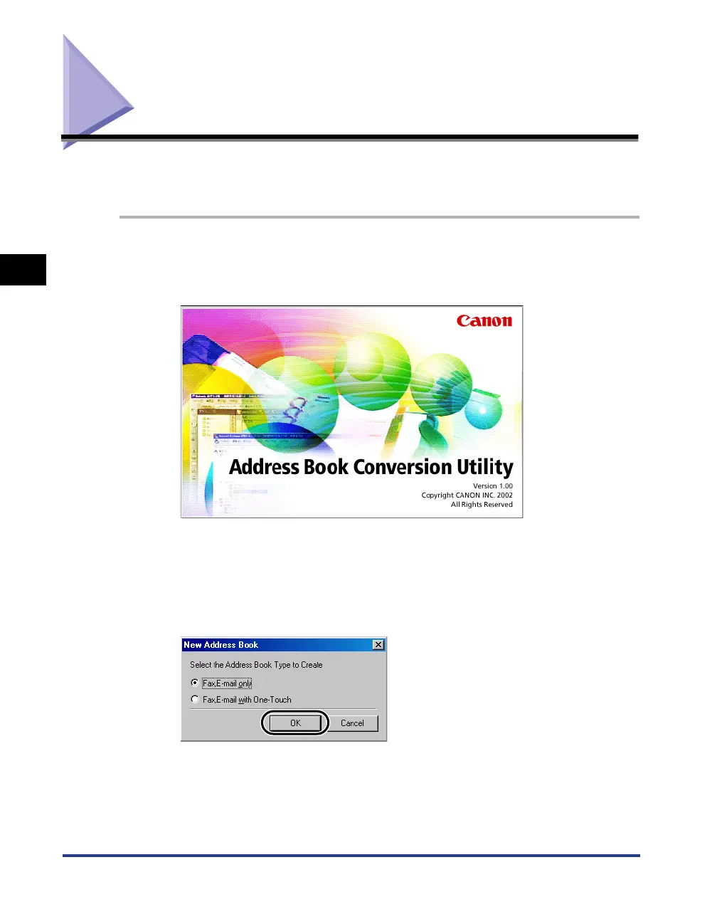 When you start up the Address Book Conversion Utility, a startup screen like the