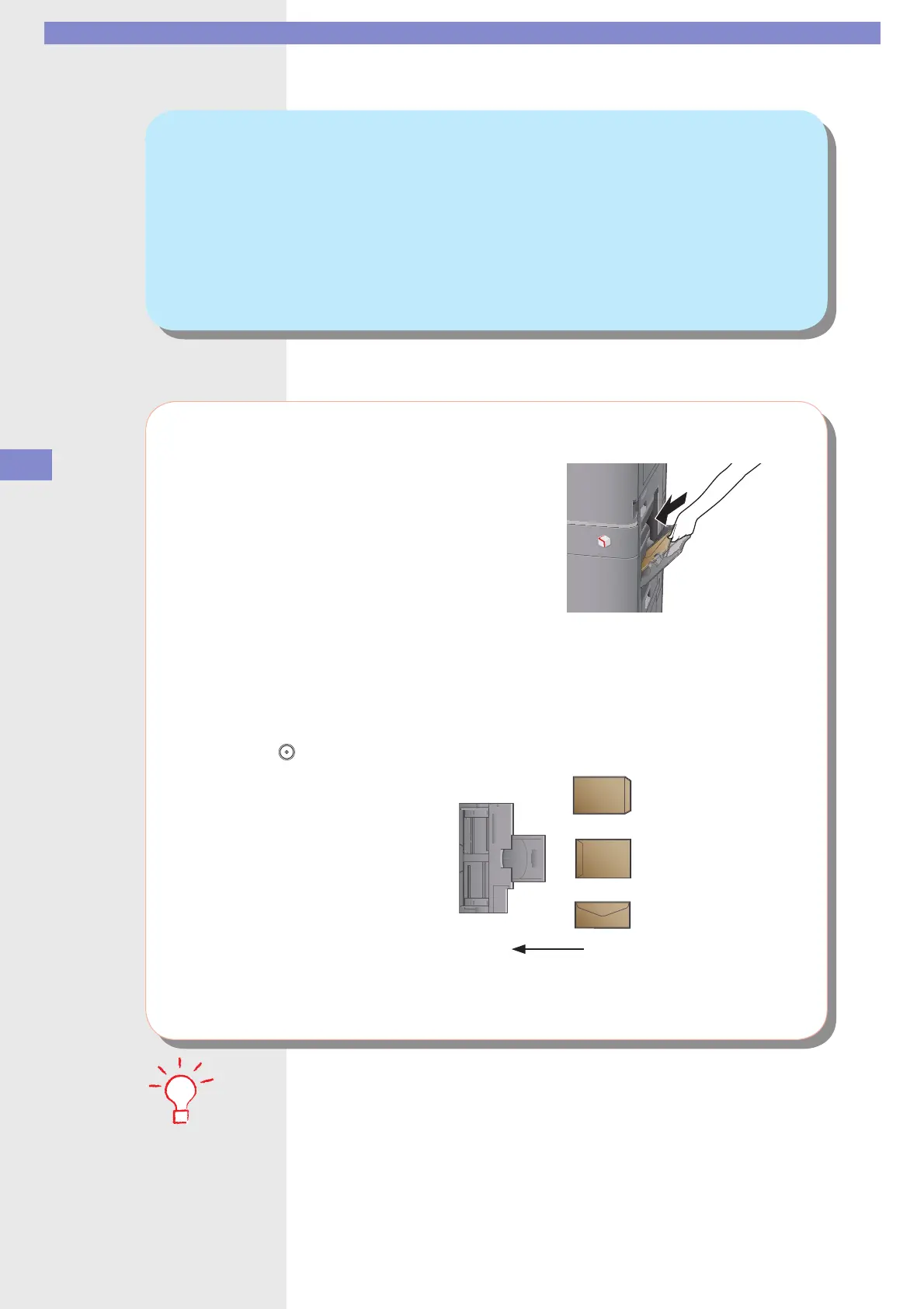 Open de papiertafel, stel de papiergeleiders af en plaats de enveloppen zoals hieronder is afgebeeld.