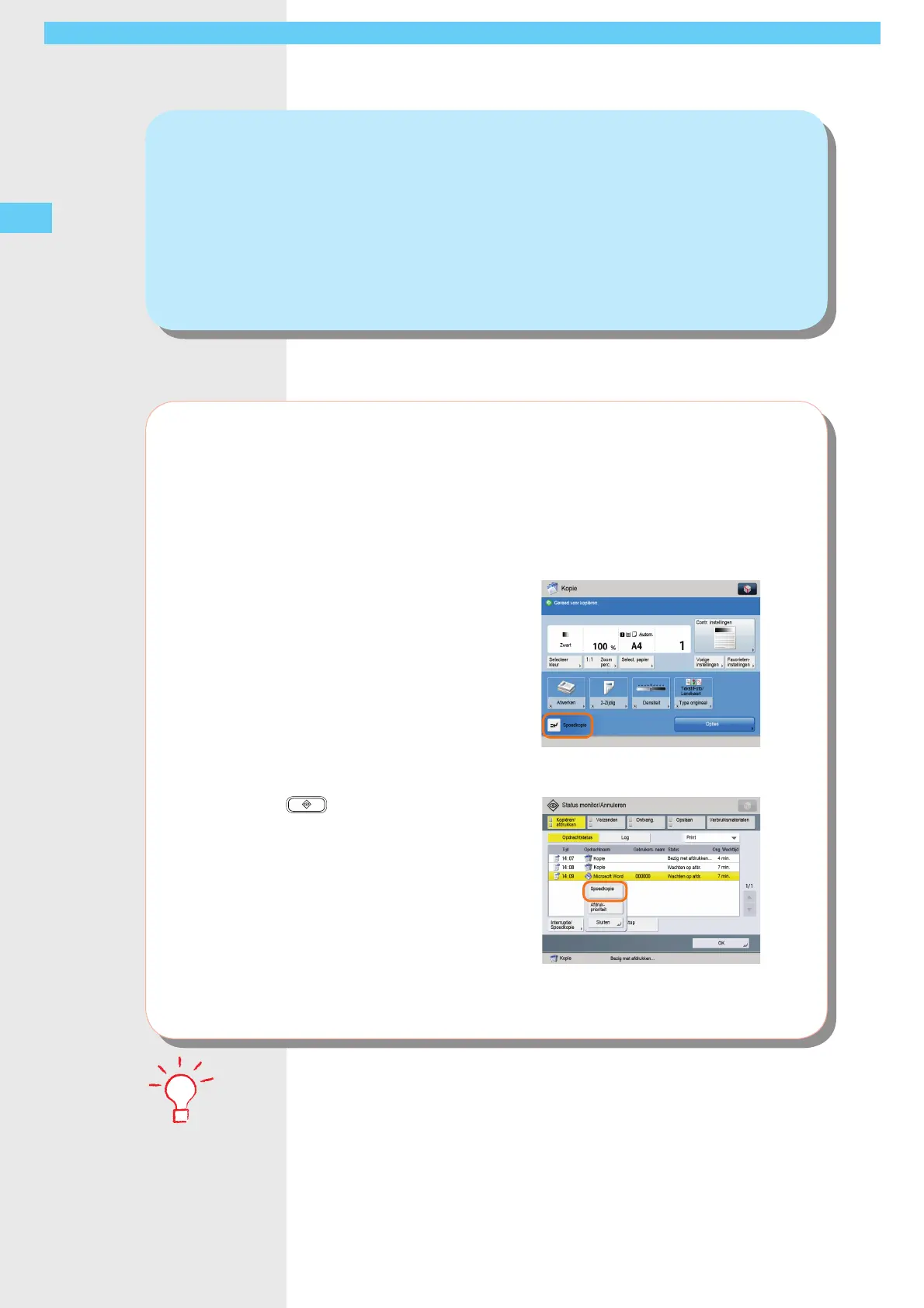 prioriteit geven aan een spoedkopieer-/afdrukopdracht via het scherm Status
