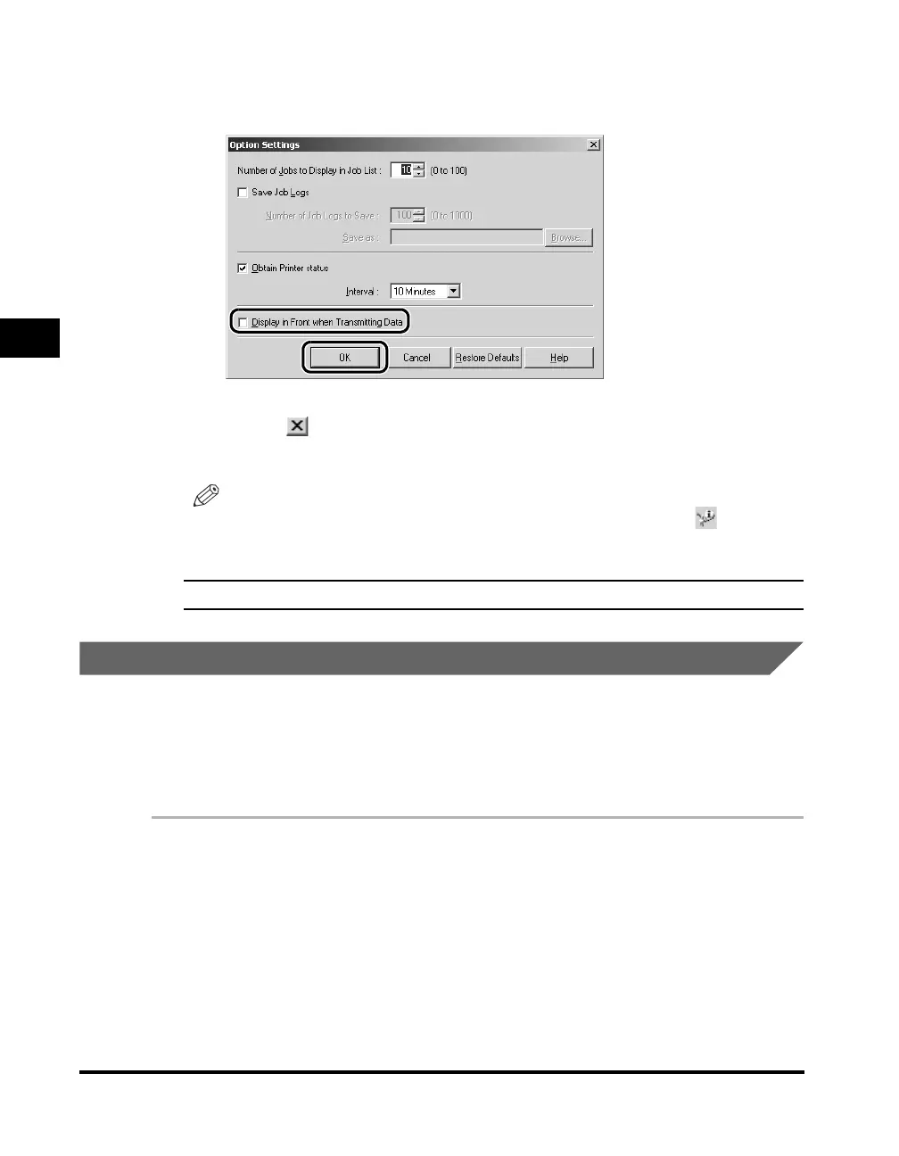 Deselect [Display in Front when Transmitting Data] ➞ click