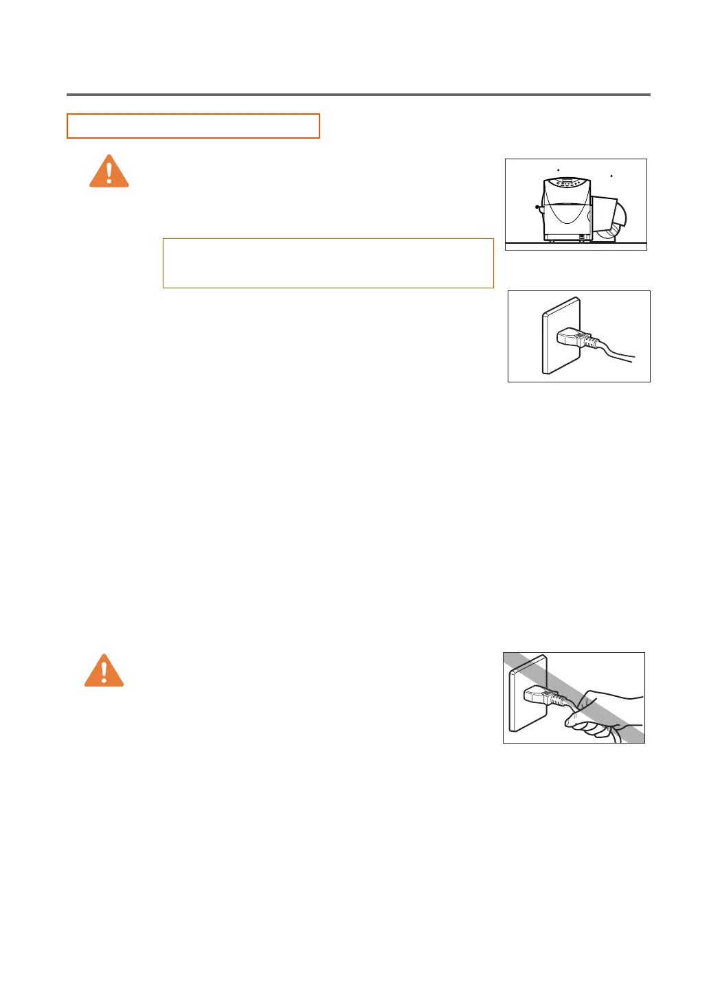 ● Never attempt to plug the power cord into the power outlet or unplug the power cord when