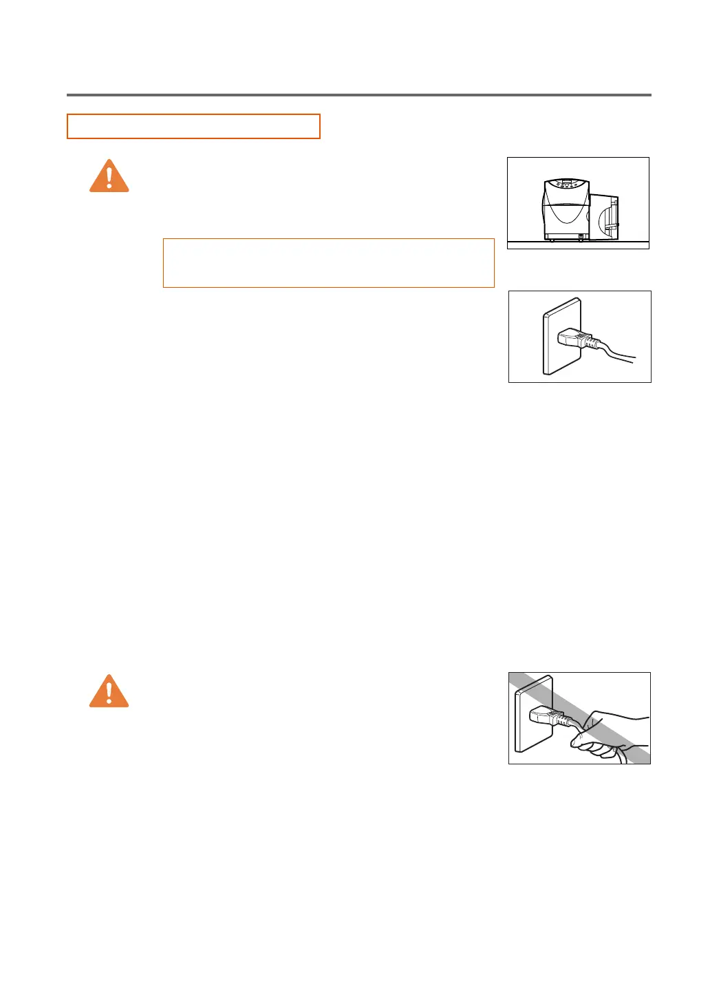 ● Never attempt to plug the power cord into the power outlet or unplug the power cord when