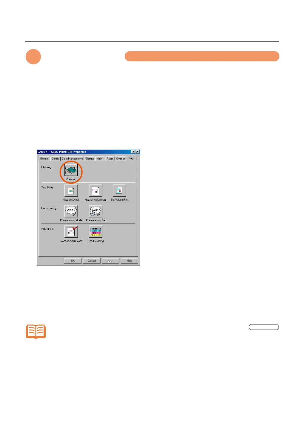 To execute the head cleaning, open the printer Properties dialog box, select the Utility tab, and then click