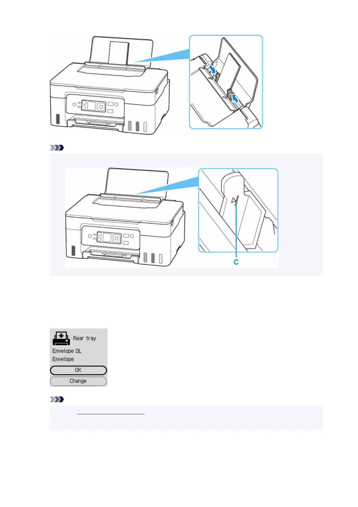 6. If page size and media type shown on LCD match size and type of envelopes loaded in rear6.
