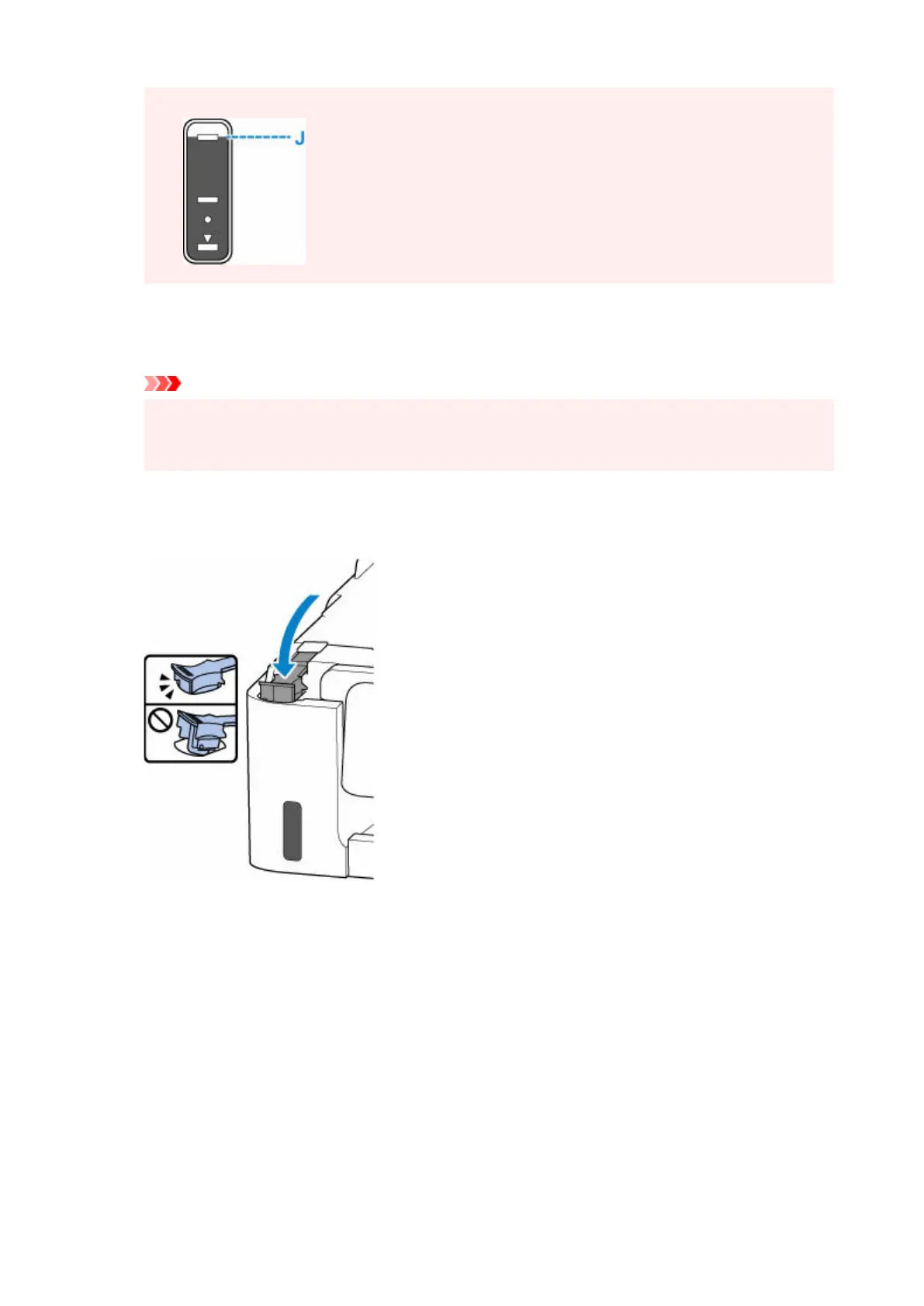 • Make sure to refill the ink tank with ink up to the upper limit line (J) on the ink tank.•